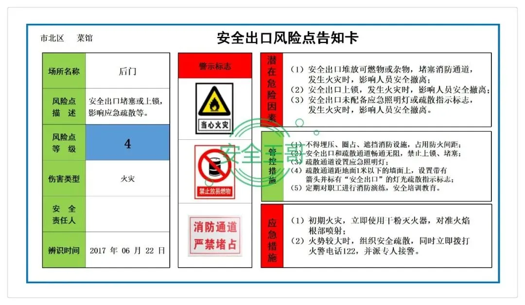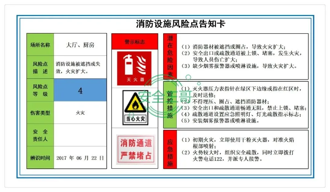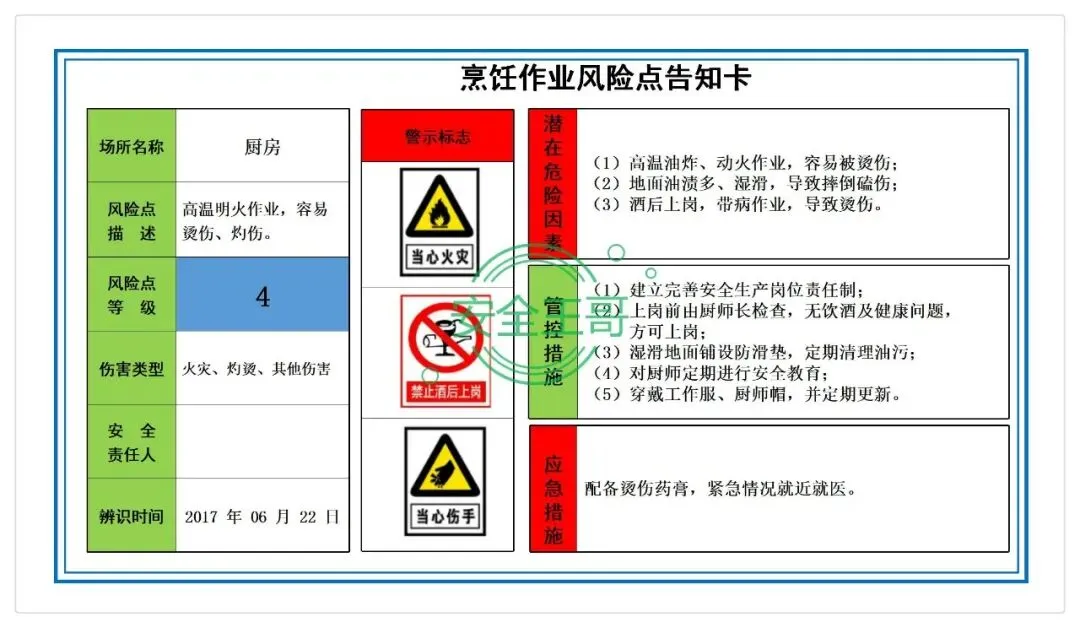 餐饮行业企业风险告知牌+危险源辨识与评价