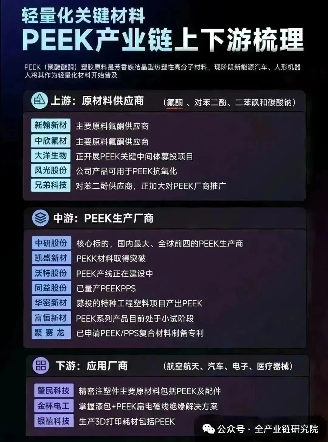 A: 潜在可关注的环节包括恒力的新兴威斯棒、蓝思的头部模组及加爪零部件、浙江荣泰;处于验证和潜在期的有汉威的触觉传感器、龙胜的轻量化谐波减速器、安培龙的六维力矩传感器。