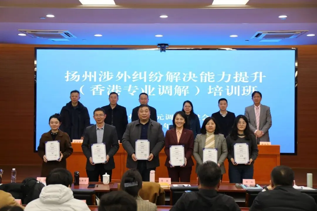 2025年1月14日至1月18日,扬州涉外纠纷解决能力提升培训班在扬州市公共法律服务中心成功举办。本次培训班由扬州市多元调解促进会联合江苏调解学院共同主办,特邀香港调解联盟会长、香港专业和解顾问中心(PMCC)陆庭华博士及香港调解资历评审协会前副主席梁庆丰先生领衔的专家团队带来香港调评会认可专业调解员培训,旨在培育兼具国际视野、专业素养与实战能力的专业调解人才,助力打造一流法治化营商环境。 培训班开班仪式由市委政法委常务副书记许林灿主持,扬州中院党组书记、院长杨晓蓉出席并致辞。杨晓蓉院长在致辞中分析了商事调解发展新形势新要求,指出此次培训班的举办恰逢其时,既是贯彻落实党的二十届三中、四中全会精神关于调解工作决策部署的创新之举,是推动《商事调解条例》落地落实的重要举措。她强调,要深刻认识商事调解是中华和合文化的生动体现,是现代生产性服务业的新赛道,更是企业出海应对法律风险的优选项,凝聚共识,推动更多力量投身这项事业。要汇聚合力,充分发挥江苏调解学院和扬州市多元调解促进会平台的载体作用,构建专业建设、理论研究、人才培养、社会服务、组织孵化“五位一体”商事调解生态群,打造全国有影响力的商事调解高地;要高点定位,借鉴先进办学理念,将江苏调解学院建成“没有围墙的一流调解学院”,积极探索构建多方参与的开放式培养体系,建立标准化课程体系,培养高素质调解人才。此次培训班是引入香港专业调解资源的创新尝试,也是法律职业共同体同堂培训的良好开端,希望全体学员以培训为契机,加强交流协作,将所学知识转化为实践动能,共同助力扬州商事调解事业发展,为打造一流市场化、法治化、国际化营商环境贡献力量。 本次培训为期5天,构建“理论筑基+技巧淬炼+实战考评”系统化课程体系,兼具专业性、实操性与国际化特质。理论模块聚焦调解核心知识,从调解精神与特性切入,系统梳理香港、内地及海外调解发展脉络,深入解读ADR(另类解决争议方法)机制、香港调解条例及调解守则,清晰界定调解、仲裁与诉讼的适用边界,同时详解各类调解模式的差异与应用场景,帮助学员夯实理论根基。技巧模块精准对接实操需求,涵盖有效沟通要素、提问方式选择、积极聆听技巧、PPS(复述、认知确认、总结)应用等基础技能,深入讲解促进技巧、重塑技巧、方案制造技巧等,强化僵局处理等核心能力,融入BATNA/WATNA(最佳/最差替代方案)等国际通用策略,全方位提升学员调解实操水平。实战模块以典型案例为载体,围绕买卖合同、商标注册、抚养权争议等8类常见纠纷场景,设置模拟练习、角色扮演、个案考核等沉浸式训练环节,搭配调解会议流程示范、课程笔试、HKMAAL第二阶段评核指导,让学员在实战中熟练运用理论知识与专业技巧,同步对接国际认可的调解员考评标准。 来自扬州市、高校、法院等领域的法律工作者,市委政法委、市法院、市司法局、扬州仲裁委、扬州大学法学院以及各大律师事务所的29名学员参加了本次培训班,通过了香港调解资历评审协会认可的第一部分40小时综合调解员课程。 经过5天紧张充实的培训,本次培训班于1月18日圆满收官。在毕业仪式上,扬州市司法局党组书记局长姚爱国、扬州大学法学院院长曲昇霞、扬州市中院原副院长姚宏斌、扬州市委政法委政治部主任李忠、扬州市司法局副局长朱毅锴以及香港调解联盟会长陆庭华分别向29名学员颁发了毕业证书。 此次培训班的成功举办,创新引入香港促进式调解的专业资源,有效增强了扬州调解员队伍解决涉外纠纷的能力,标志着扬州市在促进矛盾纠纷多元化解机制建设、构建良好国际营商环境方面迈出了坚实的一步。而扬州律师的积极参与,表明律师已经成为促进矛盾纠纷多元化解的重要力量。接下来扬州市律协仲裁与调解业务委员会将持续深化“律师+调解+仲裁”的能力建设,组织动员扬州律师以更专业化、系统化的调解能力为扬州和谐社会建设和营商环境优化做出专业贡献。