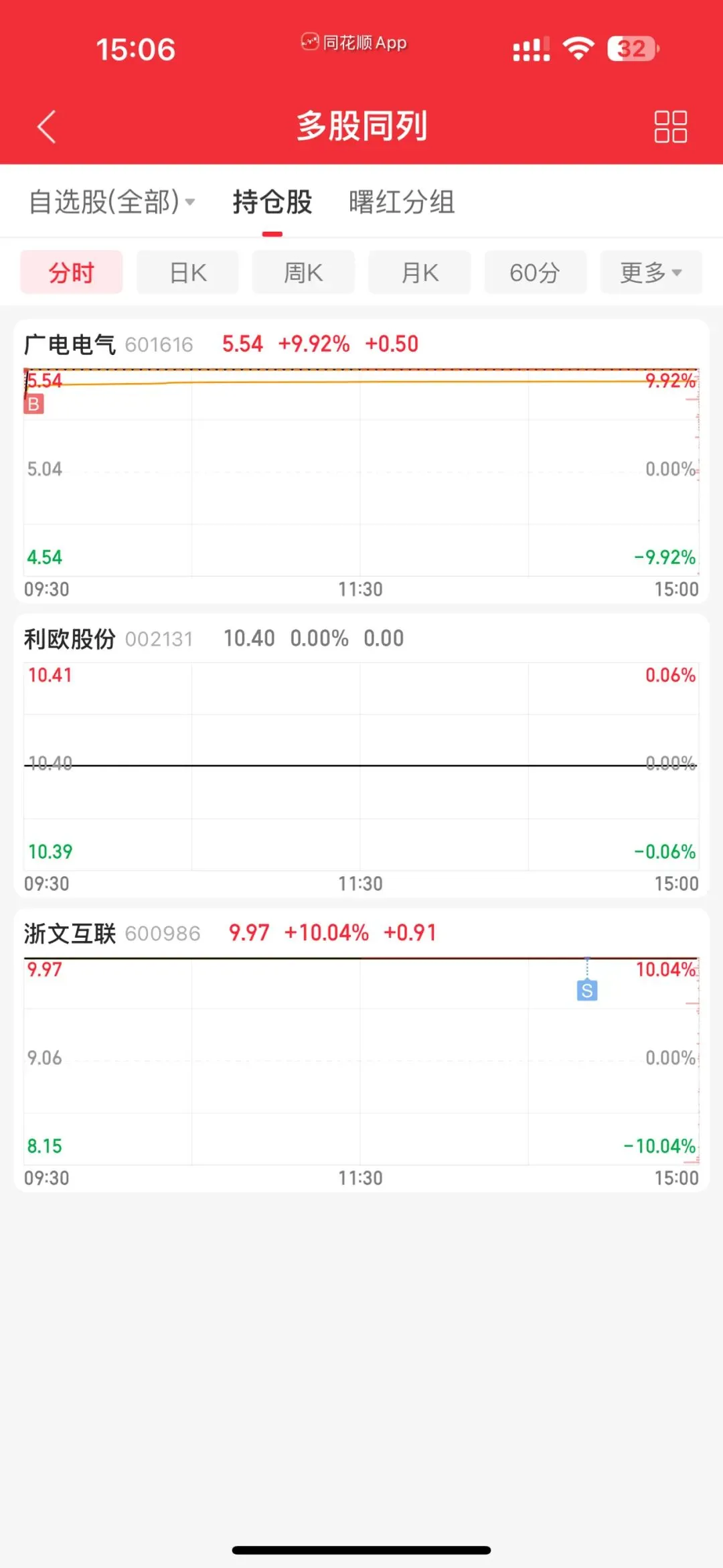 利欧明天估计得闷 浙文后面买回去黑天鹅格局到今天…所幸都没啥仓位 广电昨天是我的买点 没看 金天感觉一般 买了一点 这行情都找不到能猛干的股 感觉不到确定性 电力题材一次没有和大盘共振 基本就是过度题材 5板估计就压制了 硬要做就是每天看看一进二 比如昨天的广电 继续等了 等一个信心恢复 等一个高度打开 等一个主线