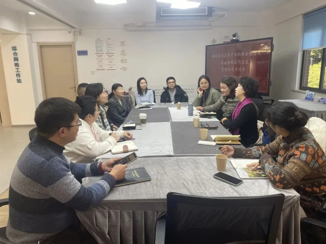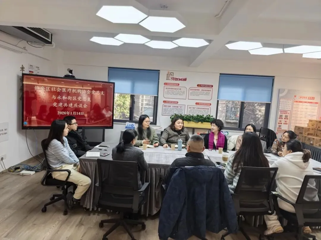 为深化党建引领基层治理创新,凝聚多元主体服务合力,1月14日,静安区社会医疗机构协会党总支联合区社会工作者协会党支部,与彭浦镇永和街区党总支共同开展党建共建座谈会。三方以“资源共享、服务共推”为核心目标,通过实地走访调研与座谈研讨,明确合作路径,为扎实推进辖区“15分钟便民服务圈”建设、为群众提供更具温度的服务奠定坚实基础。