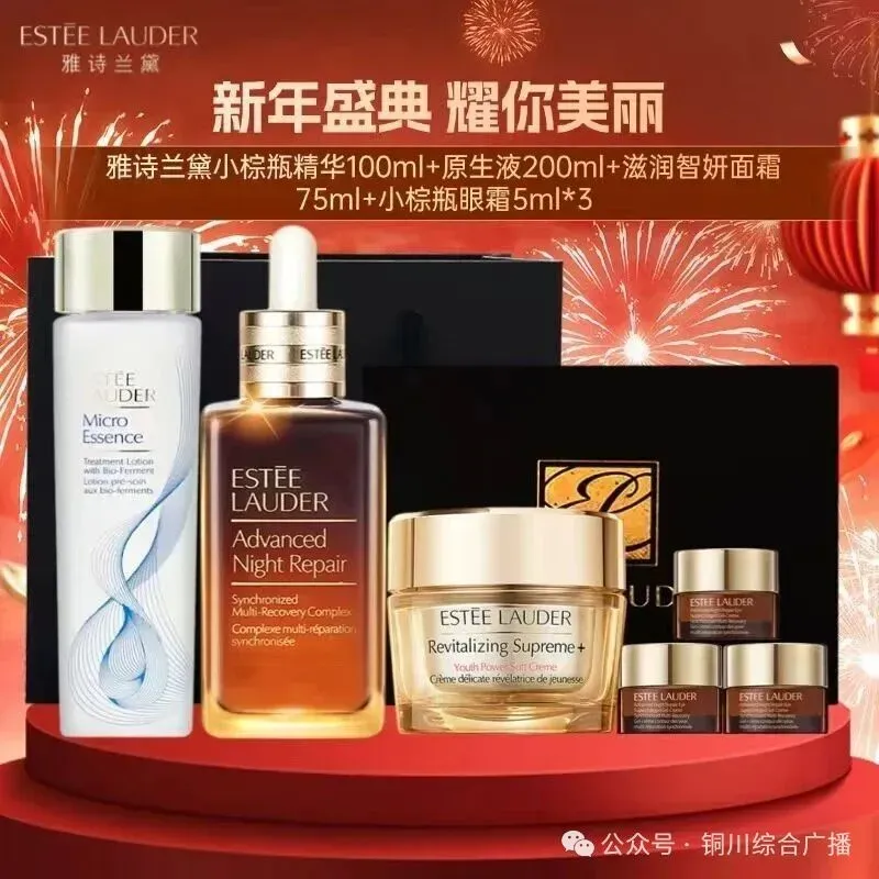 这套雅诗兰黛的“新年焕颜至尊礼盒”,我们为大家争取到的,是一个前所未有的“新年全家福”四件套礼盒!这里面每一件,都是明星中的明星!首先镇店之宝-江湖人称“小棕瓶”100毫升正装! 这瓶不用我多说了吧?深层修护,稳定肌底,抵御老化,无数人的第一瓶精华,也是回购清单上的永恒选项。100ml的大容量,用过就知道有多划算!其次是口碑爆款—原生液200毫升正装, 被誉为“干皮神仙水”,微精华质地,深透滋润,修护肌底,让皮肤像喝饱水一样通透润泽,是搭配小棕瓶的黄金CP。第三抗老神器,滋润版智妍面霜75毫升正装! 被称为“胶原霜”,一键激活胶原,让肌肤饱满弹润,淡化细纹,把抗老紧致工作交给它,绝对安心。最后就是小棕瓶眼霜5毫升,我们直接给你来3支! 相当于一个15毫升的正装量!对付黑眼圈、细纹、干燥,眼部的小问题,它温柔又强大。这四件雅诗兰黛明星产品,平时单买加起来要多少钱?基本上接近4000元,今天,新年特惠价,整套礼盒只需要699元! 而且,是香港直邮,保证品质,还配有精美礼盒和礼袋,送人自用,面子十足!但这,还只是惊喜的开始!我们的商城新年活动同步开启,消费满额立赠大牌好礼!心动的朋友直接微信搜索“铜川综合广播”回复“4”参与咱们的2026新年活动吧!