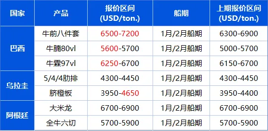点评:2026年1月上半月巴西牛肉国内销量阶段性放缓但同比偏高、批零价格分化,中国配额引发供应担忧,日均出口同比大增超80%。