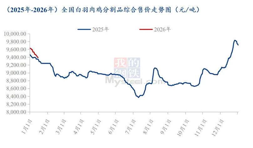 前期白羽鸡苗市场处于停苗期,市场无交易。周中后期,白羽鸡苗市场开始交易,均价为2.62元/羽,开盘后,鸡苗价格下滑明显,一是市场开始出苗且出苗量陆续增加趋势明显;二是毛鸡价格下滑,对鸡苗价格支撑有限;三是养殖端补栏需要先提前排屠宰场计划,屠宰端在不给排计划的情况下,养殖端不敢上苗,上苗积极性欠佳,鸡苗成交有限;四是市场部分鸡苗存在质量问题,价格较低,拉低鸡苗价格;五是临时计划较多,市场成交高报低走,议价成交。总体而言,鸡苗在供需双弱的情况下,价格下滑明显。