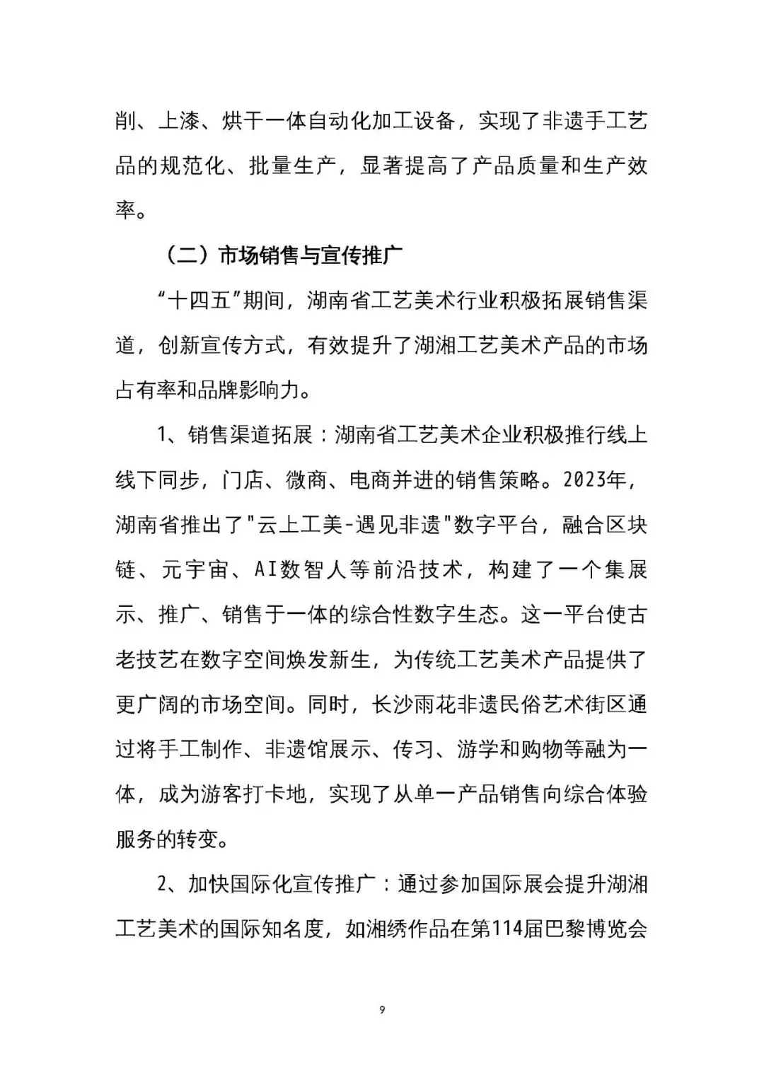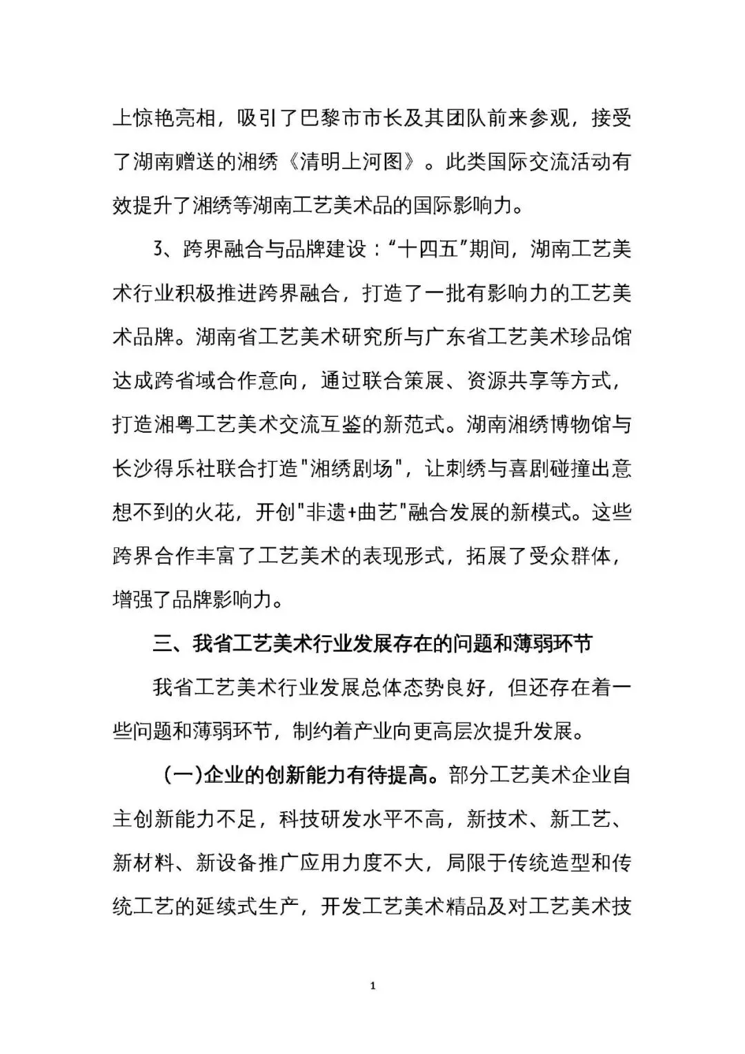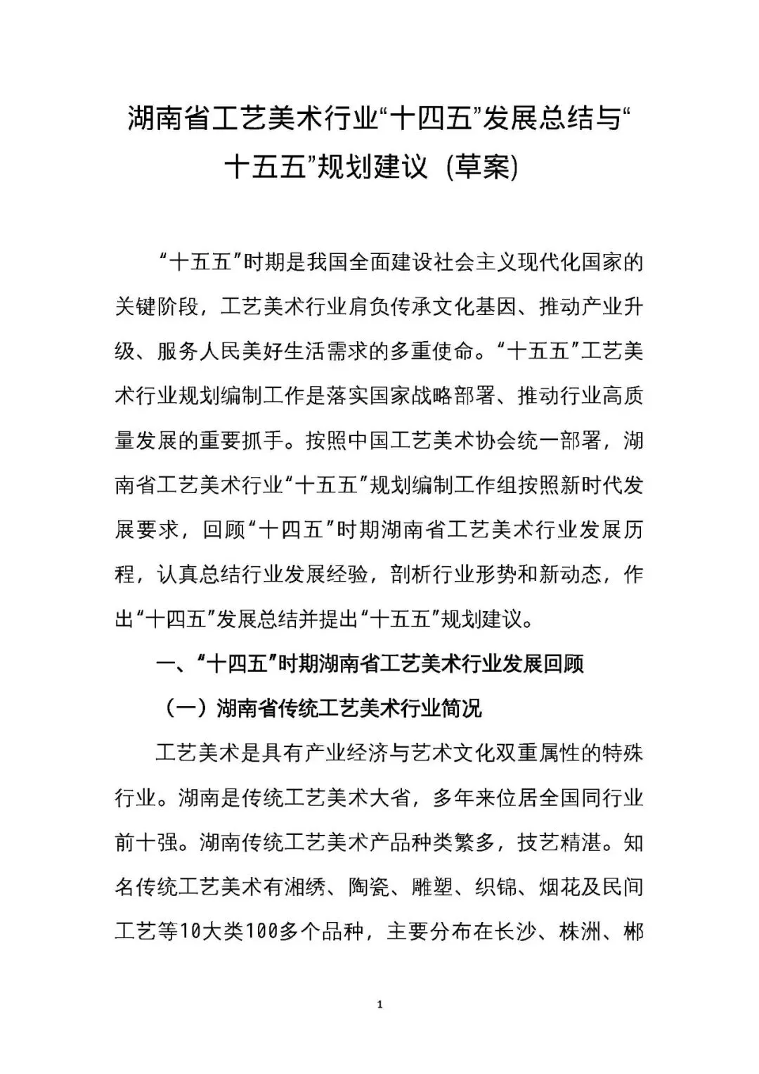 >湖南省工艺美术行业“十四五”发展总结与“十五五”规划建议