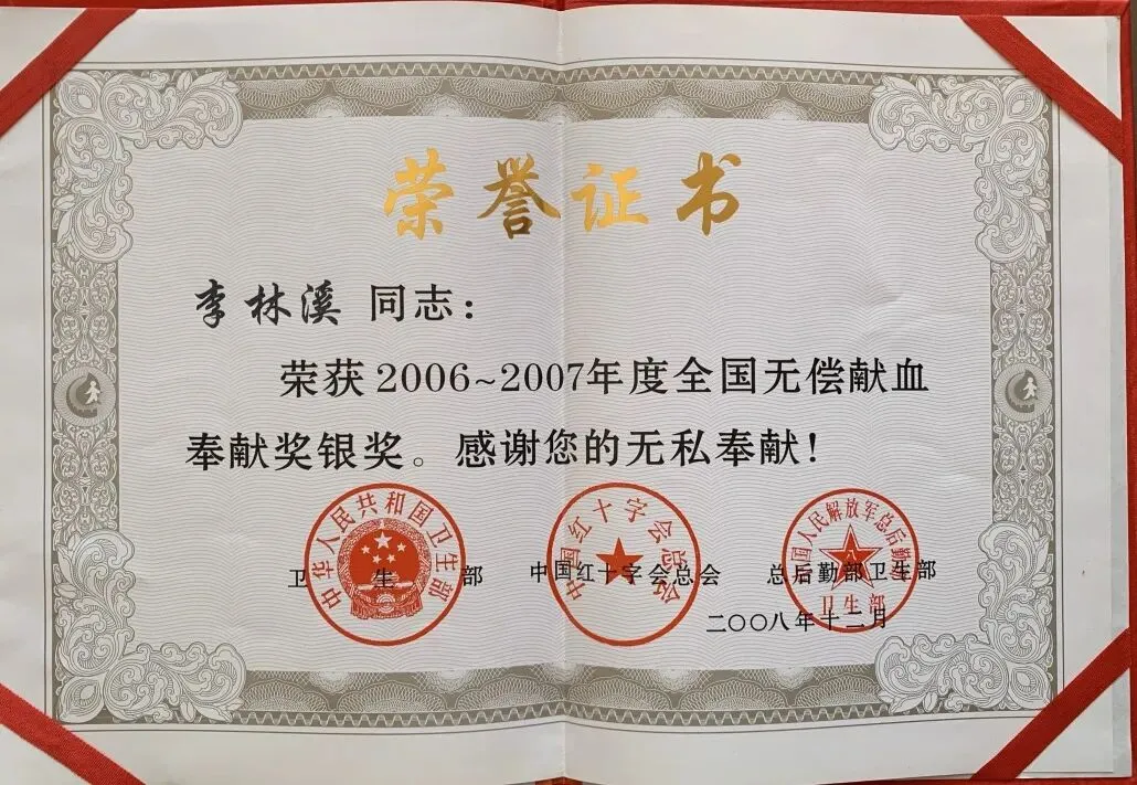 转变发生在2024年,他在献血道路上开启了新的方向——从捐献全血转为捐献血小板。这一转变,源自他在工作中的亲身经历。由于在肿瘤放疗领域工作,他接触到大量因化疗导致血小板严重减少的患者,因此深知血小板对他们的生存至关重要。他直言:“血小板临床需求大,但捐献者相对较少,因此决定转献血小板,我转捐血小板,就能更针对性地帮助到那些最需要的重症患者。”令他难忘的是,他曾遇到一位患者因及时输注血小板而稳定了病情,最终顺利完成治疗。这件事让他亲眼看到献血如何直接改变生死,每一袋血都可能在某个瞬间成为别人活下去的转机,李林溪想再多创造一些这样的奇迹。