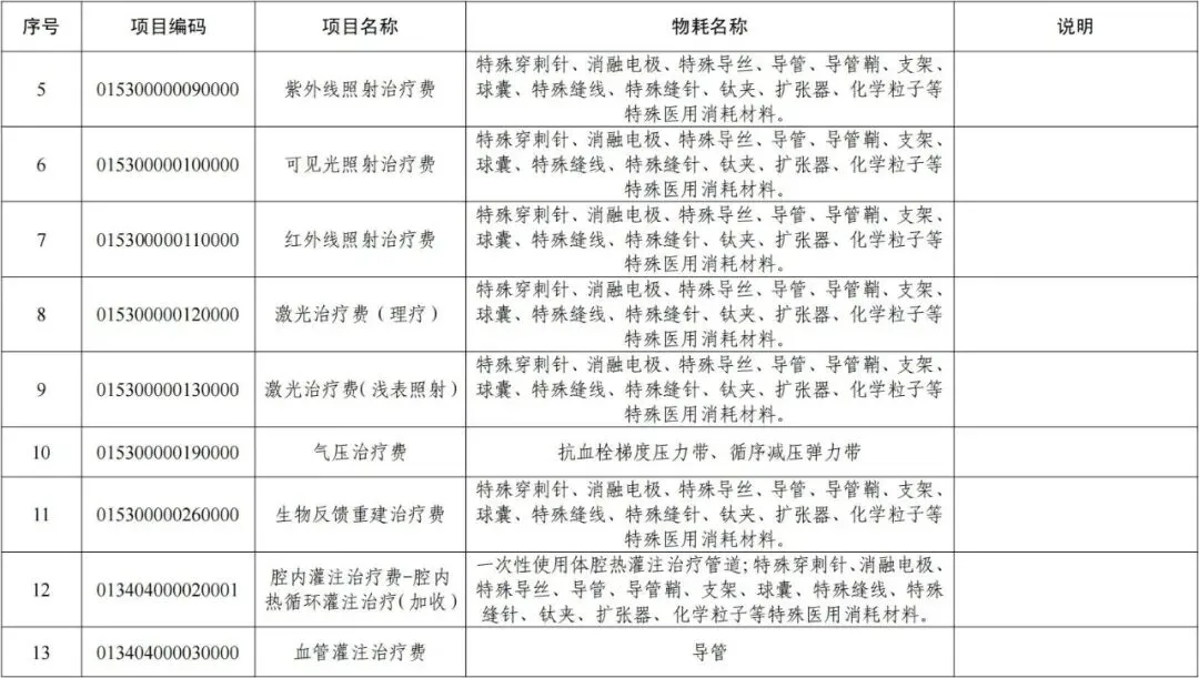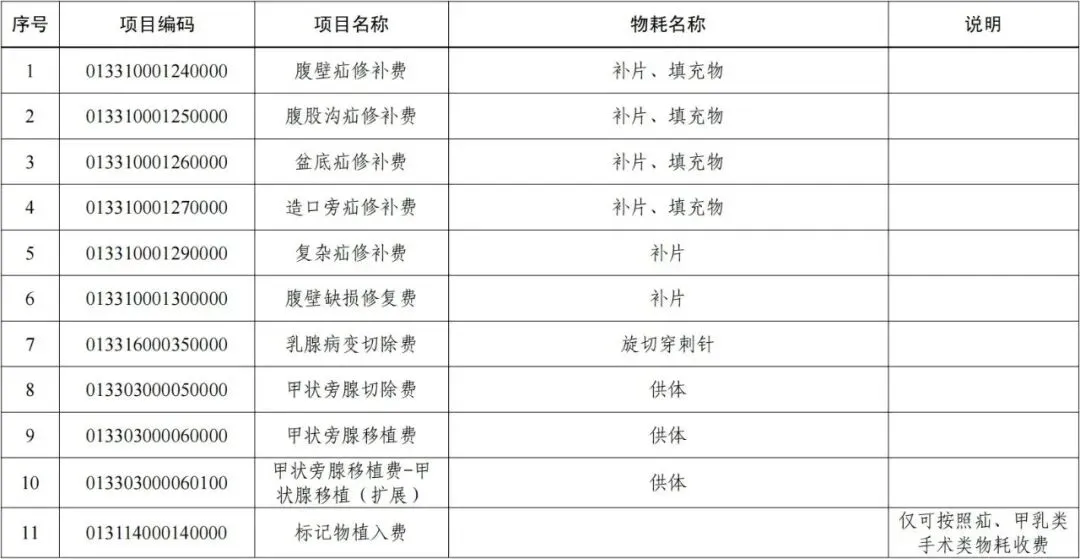 列入本清单的物耗,可向患者另外收费,价格标准按照实际采购价格零差率销售;其他物耗已包含在医疗服务项目中,一律不得另外收费。