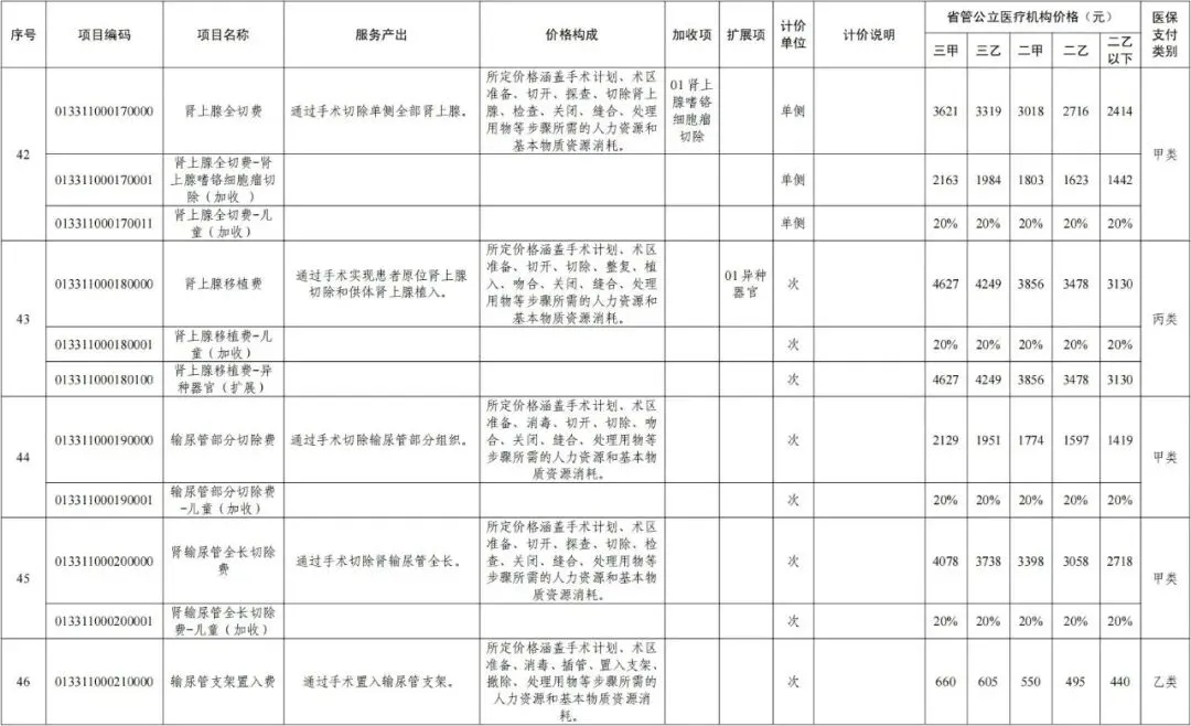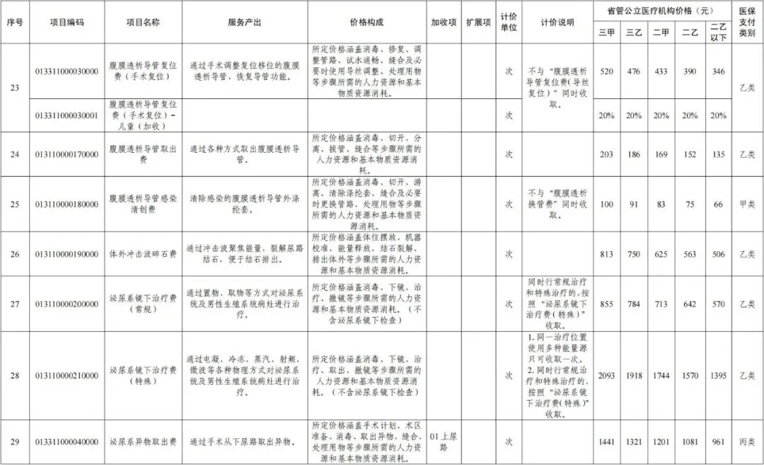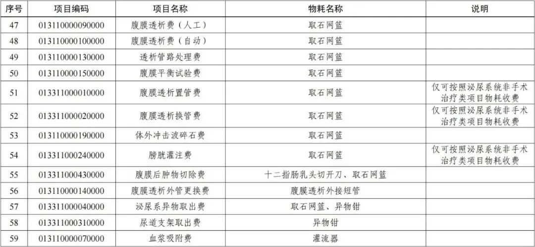 停用原执行267项泌尿系统类医疗服务价格项目。