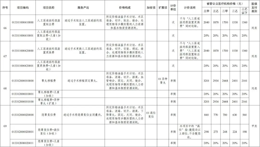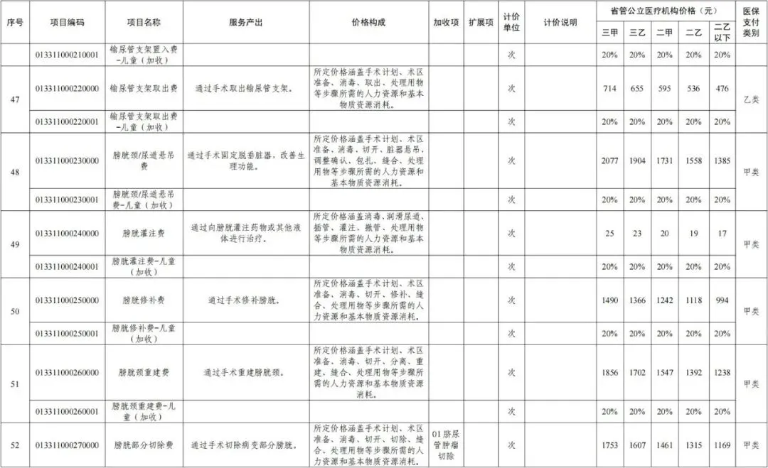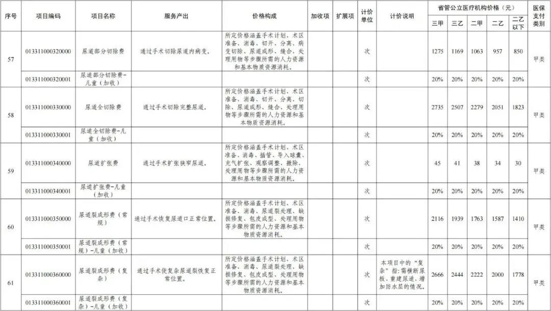 规范整合后共103项泌尿系统类医疗服务价格项目,修订原执行价格项目1项。