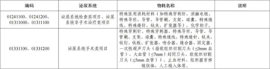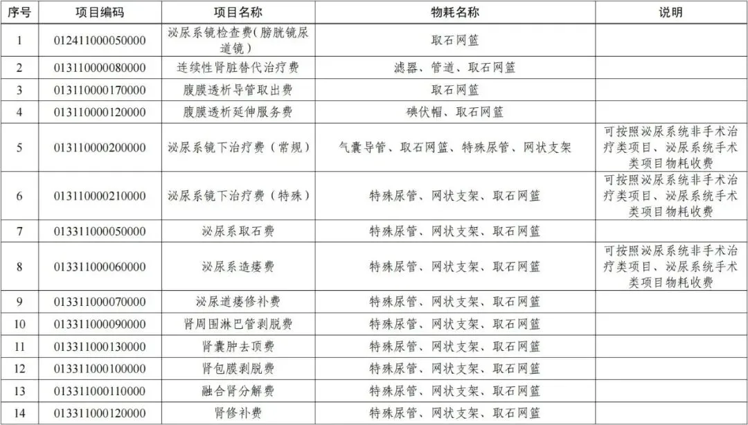 泌尿系统类基本物耗包括但不限于各类消杀灭菌用品、储存用品、清洁用品、个人防护用品、垃圾处理用品、滑石粉、标签、防渗漏垫、中单、护(尿)垫、棉球、棉签、纱布(垫)、治疗护理盘(包)、治疗巾(单)、手术巾(单)、手术包、普通注射器、可复用的操作器具、冲洗工具、报告打印耗材、碘伏帽、肝素帽、血透置换液(成品或自制)、血透透析液、软件(版权、开发、购买)成本等。