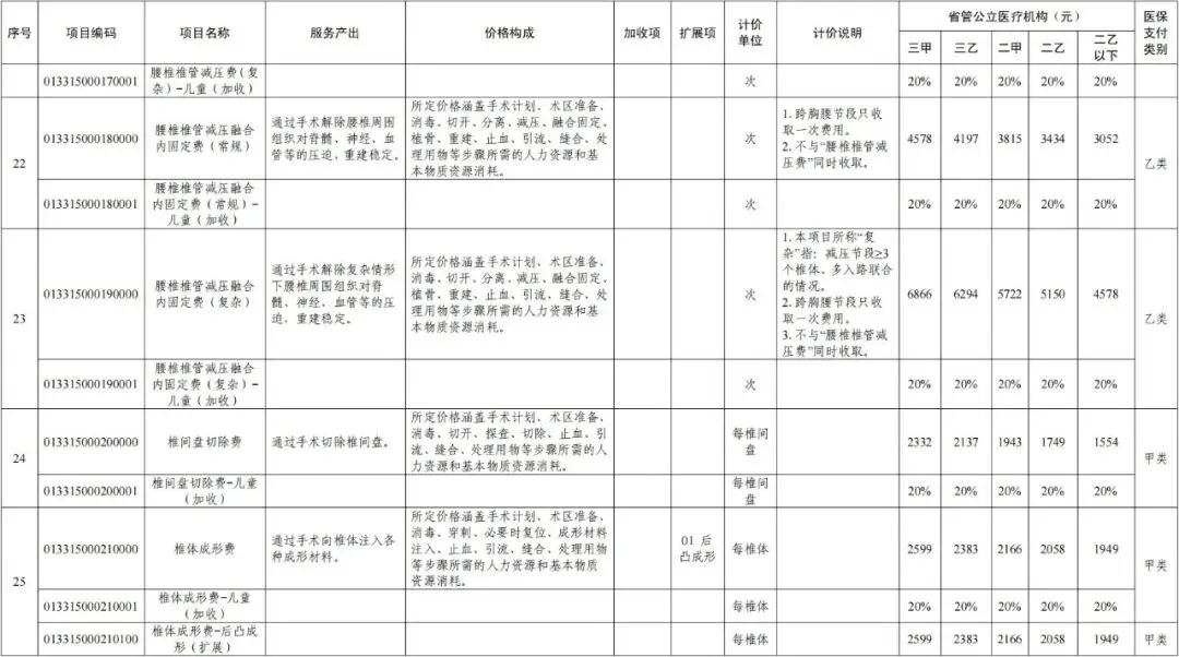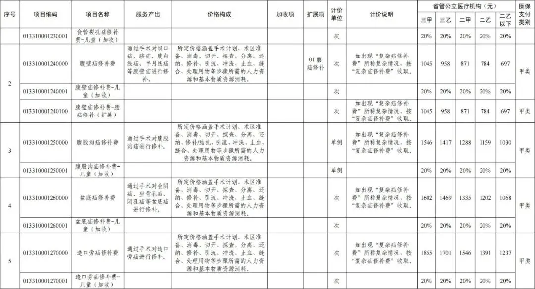 规范整合后共25项疝甲乳类医疗服务价格项目,修订原执行价格项目1项。