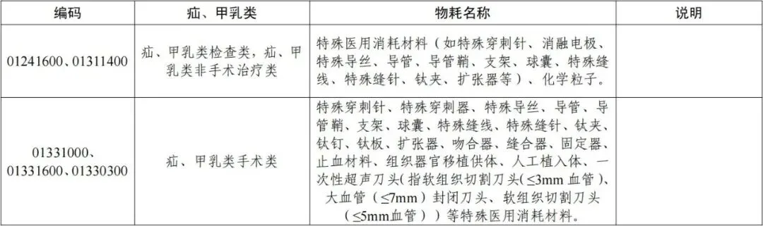 疝甲乳类基本物耗包括但不限于各类消杀灭菌用品、储存用品、清洁用品、个人防护用品、垃圾处理用品、滑石粉、标签、防渗漏垫、中单、护(尿)垫、棉球、棉签、纱布(垫)、治疗护理盘(包)、治疗巾(单)、手术巾(单)、手术包、普通注射器、可复用的操作器具、标本采集存放用品、乳管内窥镜鞘、报告打印耗材、软件(版权、开发、购买)成本等。