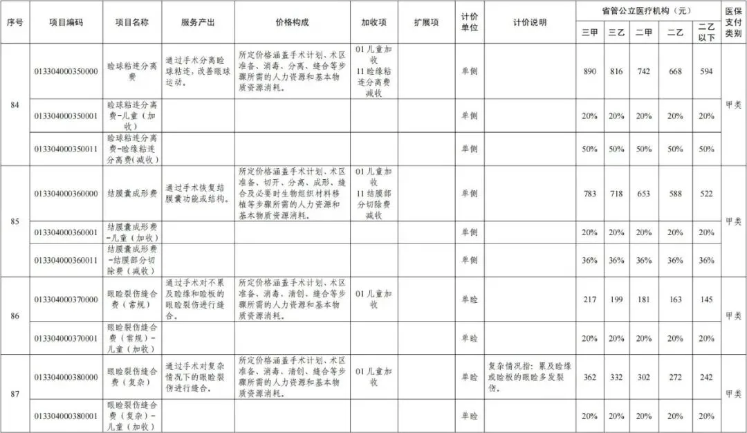为贯彻落实国家医保局医疗服务价格项目立项指南,四川省对眼科类、耳鼻喉科、骨骼肌肉系统类、神经系统类、心血管系统类医疗服务价格项目进行规范整合。