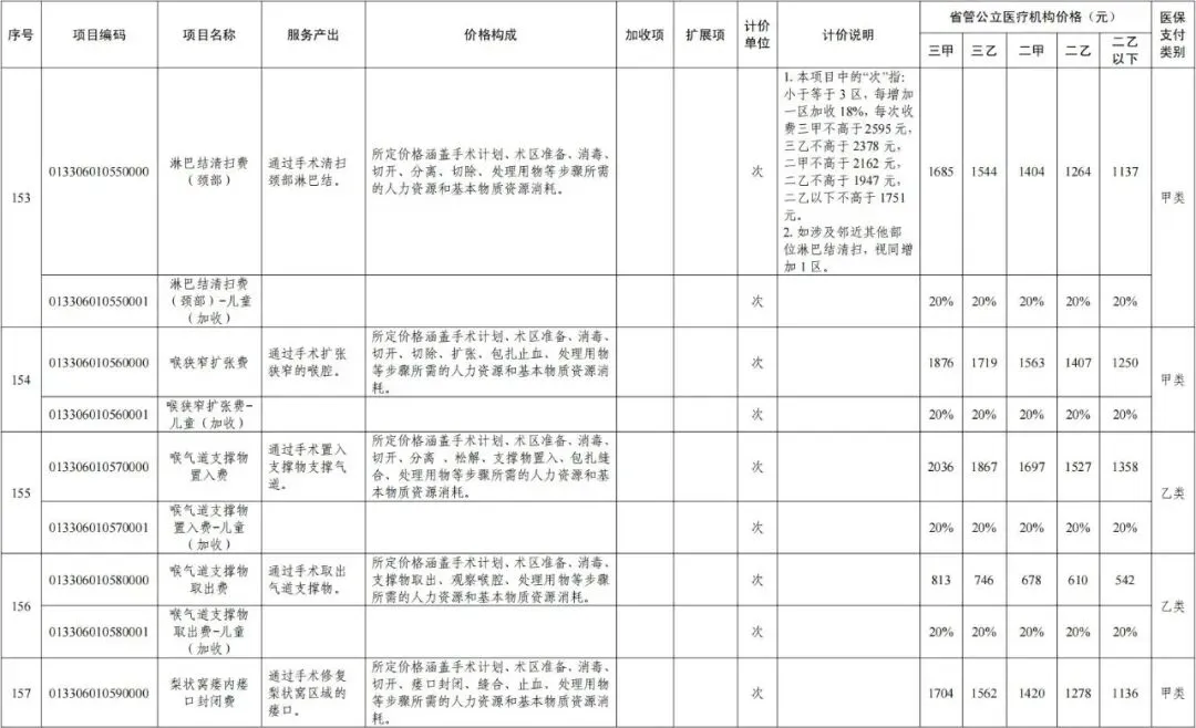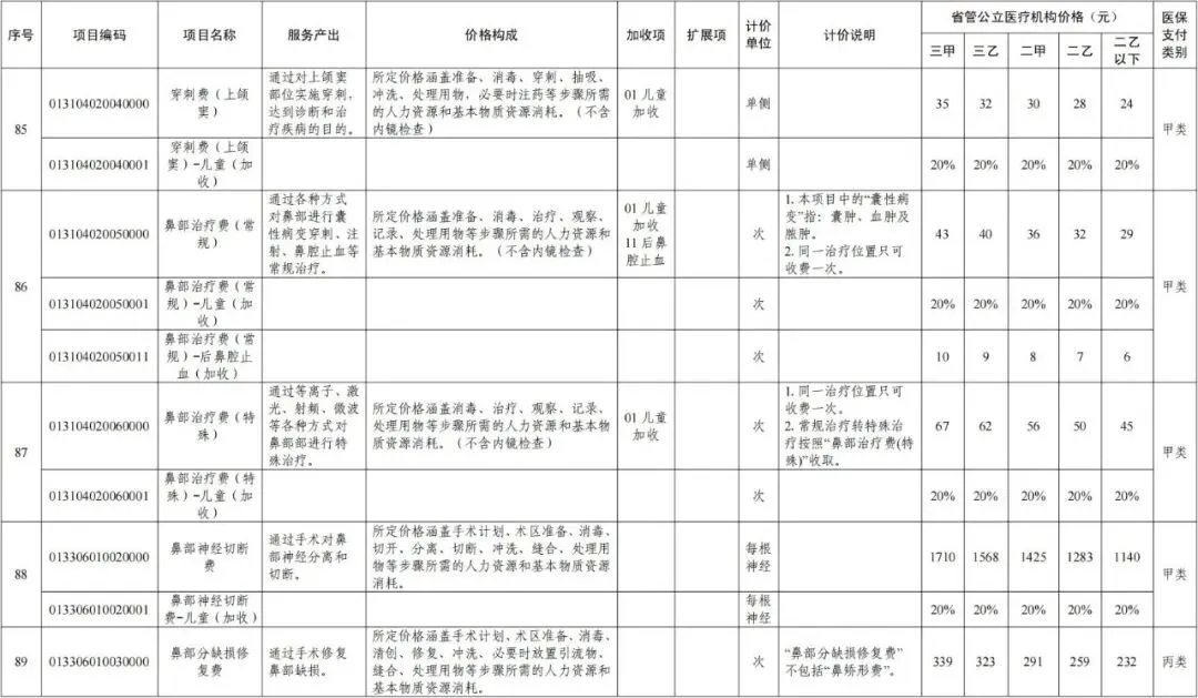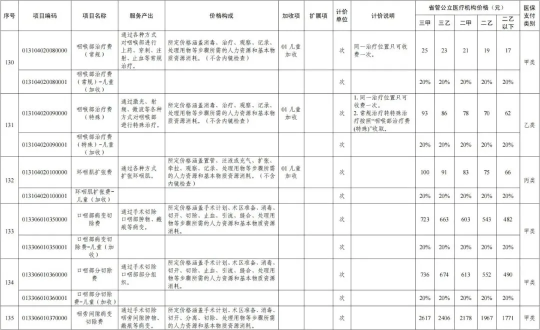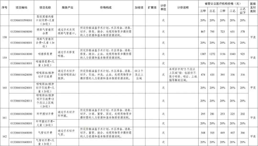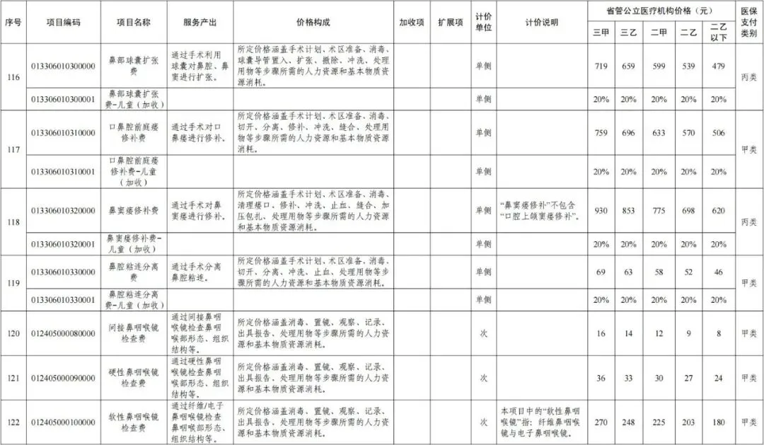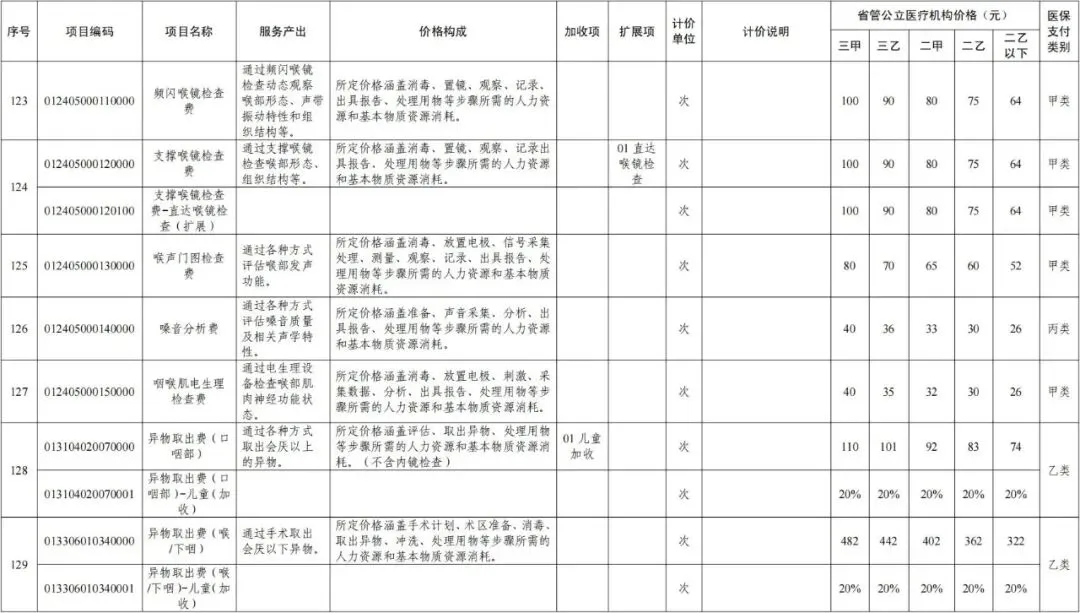 规范整合后共164项耳鼻喉科医疗服务价格项目,修订原执行价格项目2项。