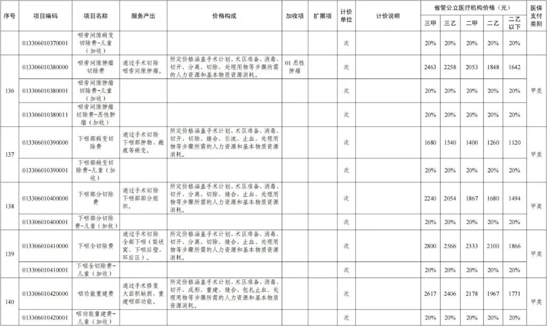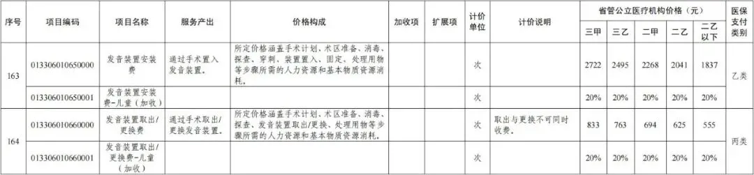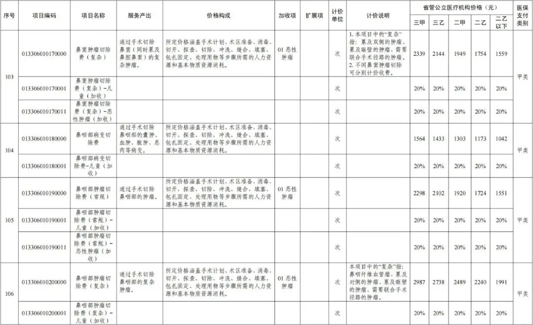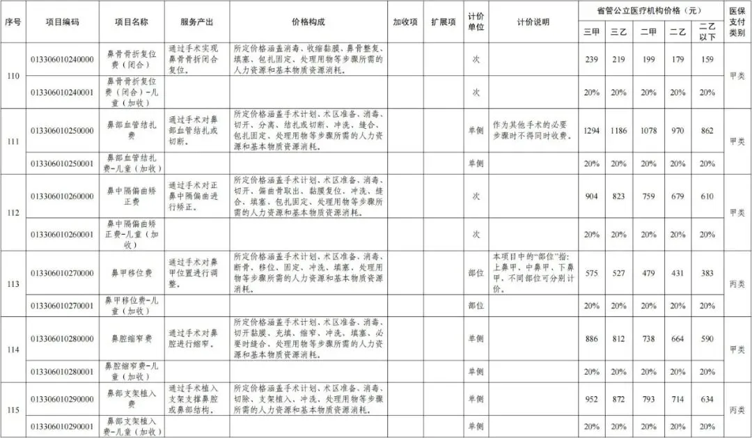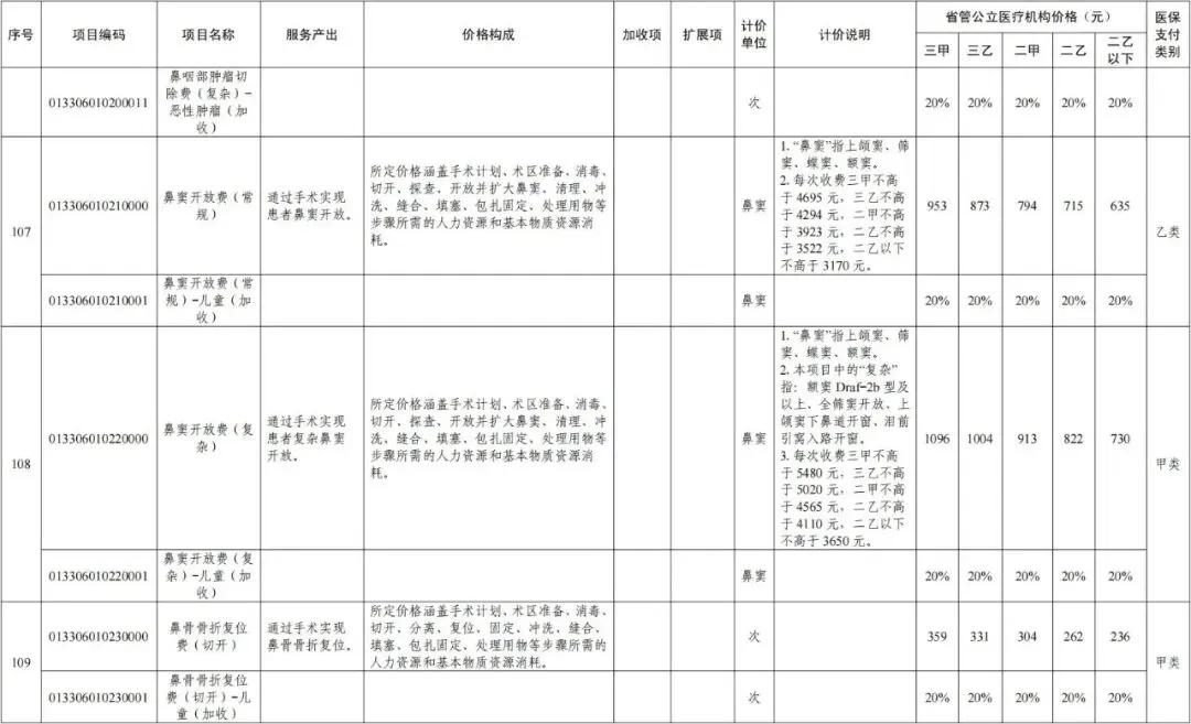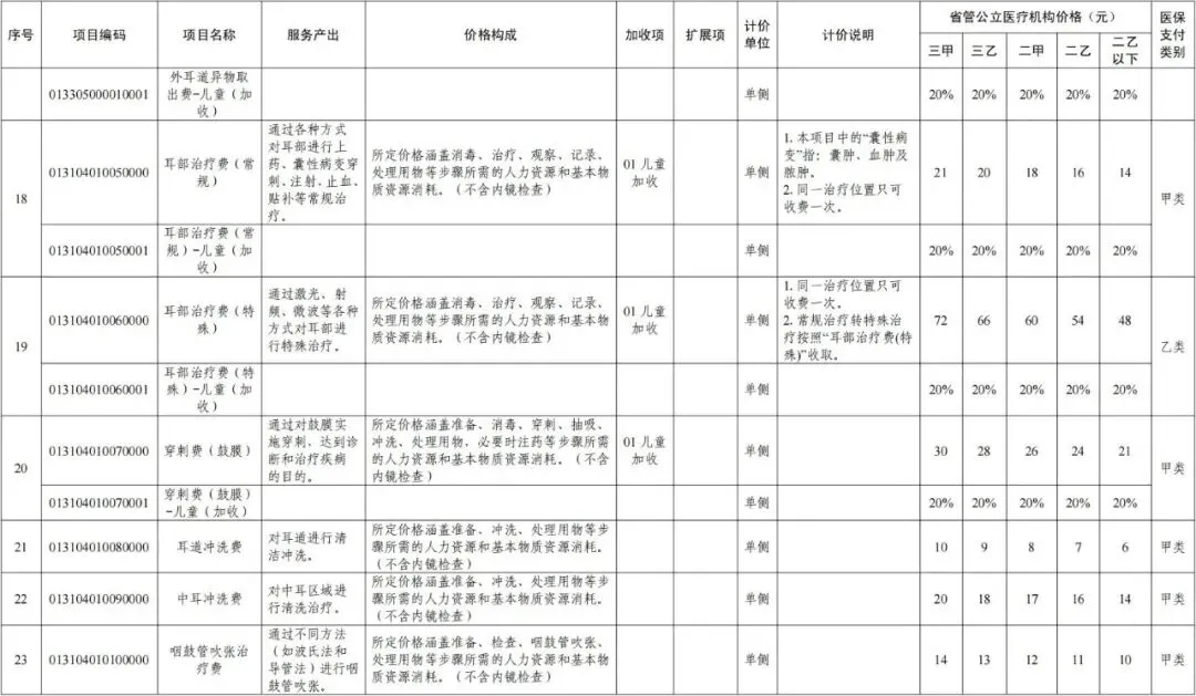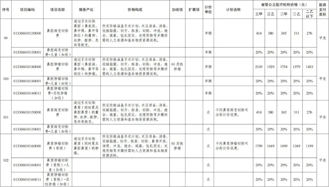 规范整合后共164项耳鼻喉科医疗服务价格项目,修订原执行价格项目2项。