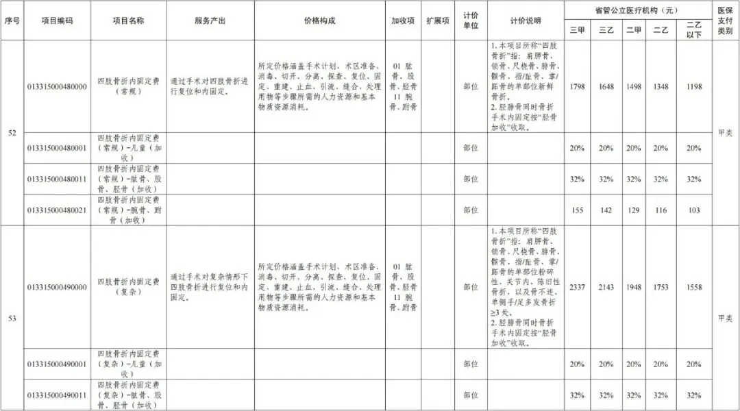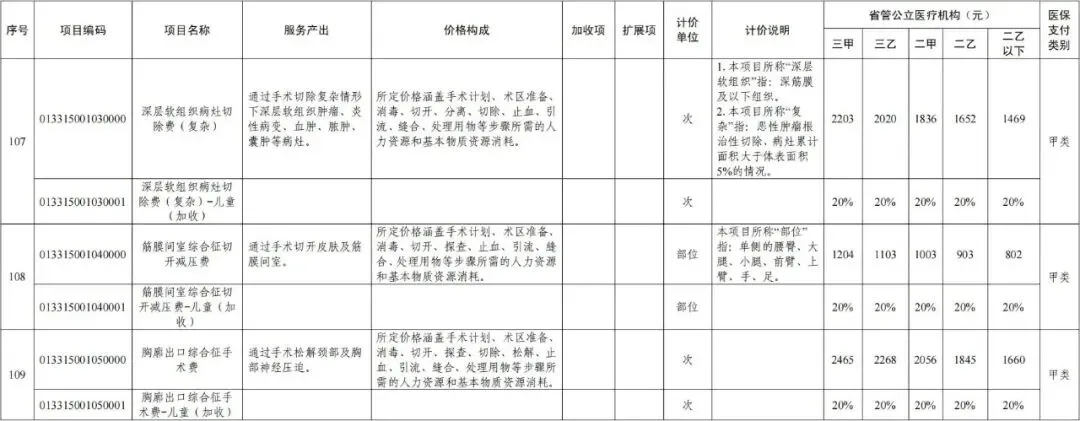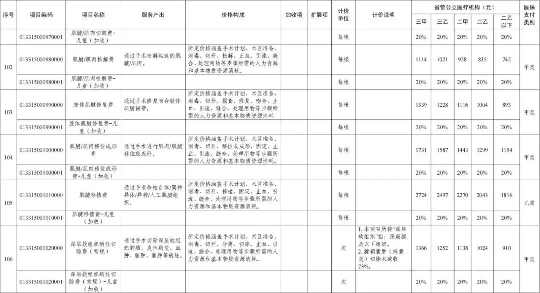 规范整合后共109项骨骼肌肉系统类医疗服务价格项目。