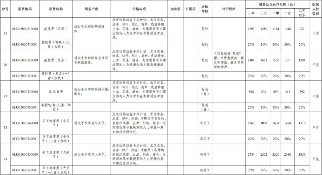 停用原执行77项疝甲乳类医疗服务价格项目。