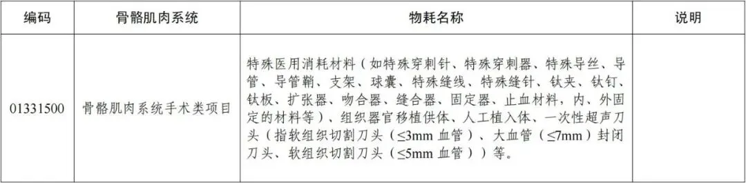 骨骼肌肉系统类基本物耗包括但不限于各类消杀用品、储存用品、清洁用品、个人防护用品、针(刀)具、刮匙、垃圾处理用品、冲洗液、润滑剂、灌洗液、棉球、棉签、纱布(垫)、绷带、腕带、护垫、衬垫、手术巾(单)、治疗巾(单)、治疗护理盘(包)、注射器、防渗漏垫、标签、操作器具、冲洗工具、备皮工具、包裹单(袋)等。