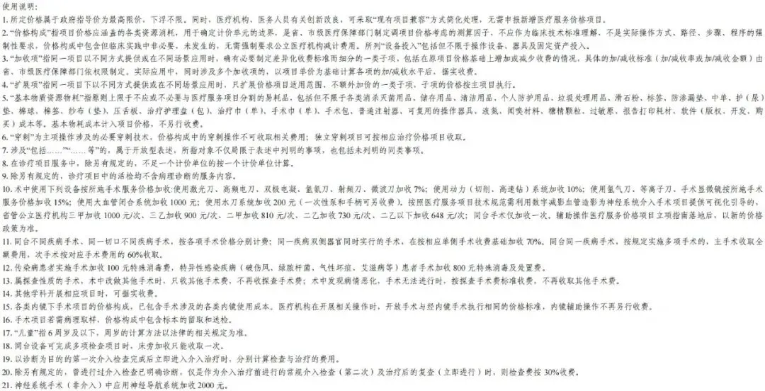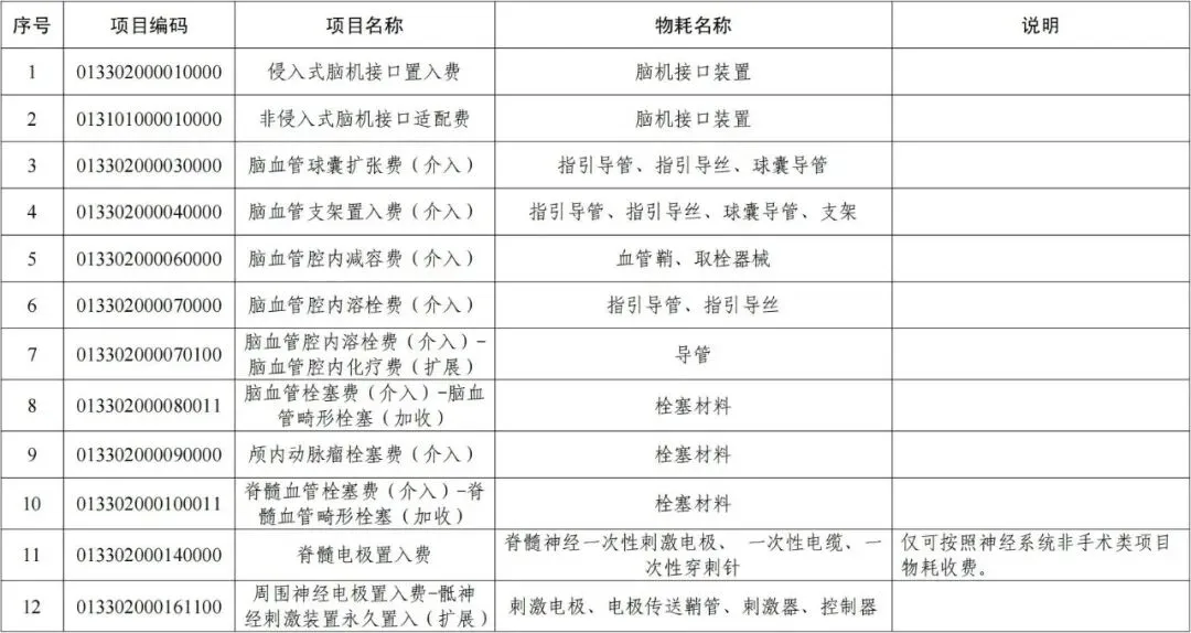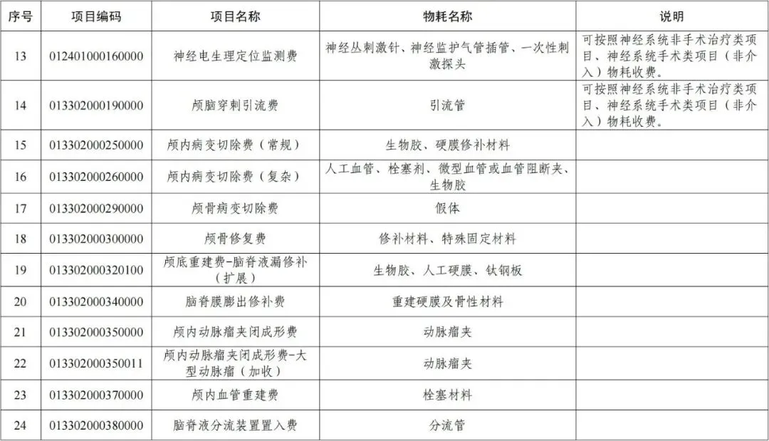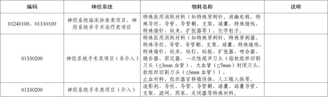 列入本清单的物耗,可向患者另外收费,价格标准按照实际采购价格零差率销售;其他物耗已包含在医疗服务项目中,一律不得另外收费。神经系统手术类项目(非介入)可按原省物价局和省卫生厅《关于规范调整医疗服务价格的通知》(川价费〔2002〕97 号)中的“手术用一次性特殊材料、器械目录”继续执行,目录见文末。