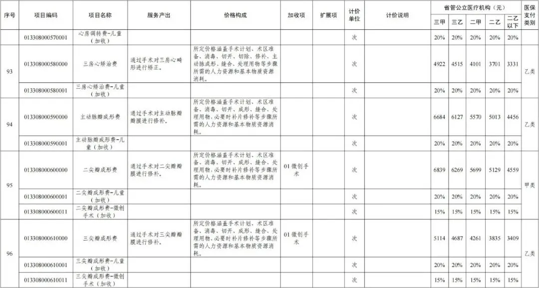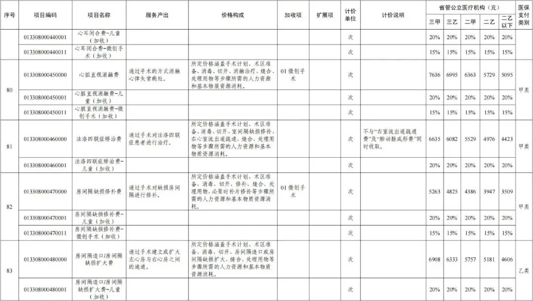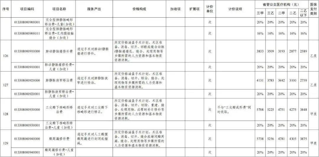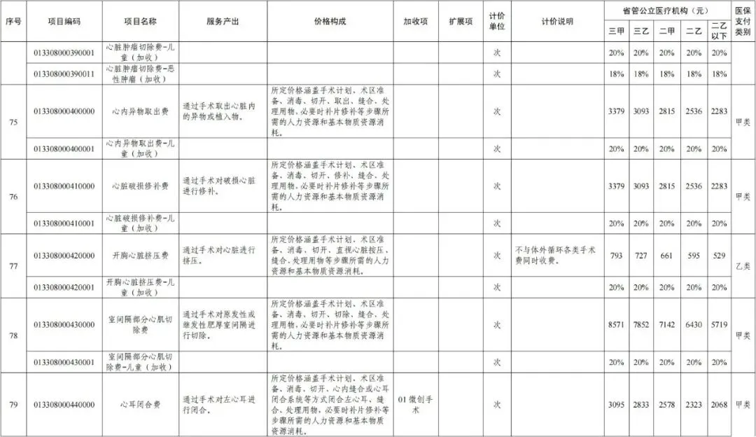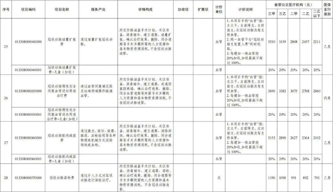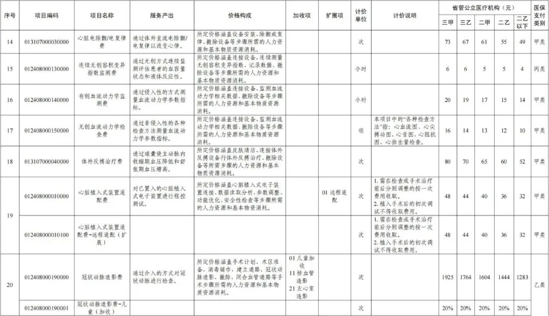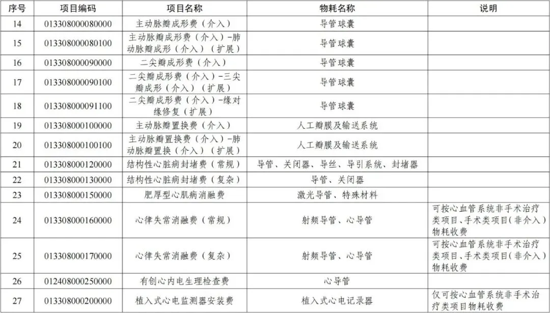 规范整合后共129项心血管系统类医疗服务价格项目。
