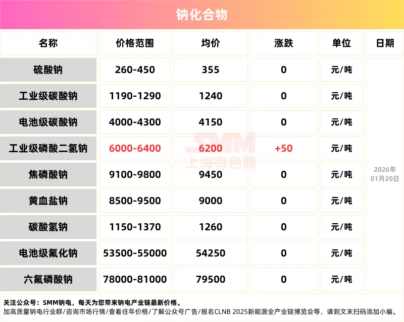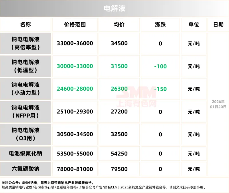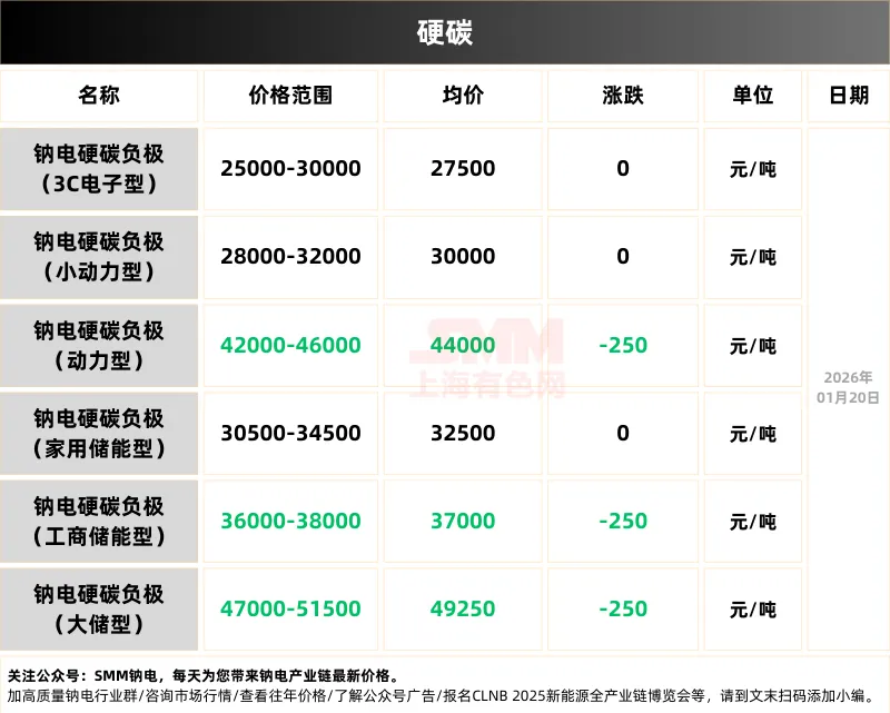 每日获取最新钠化合物、前驱体、正极材料、硬碳、电芯、电解液价格