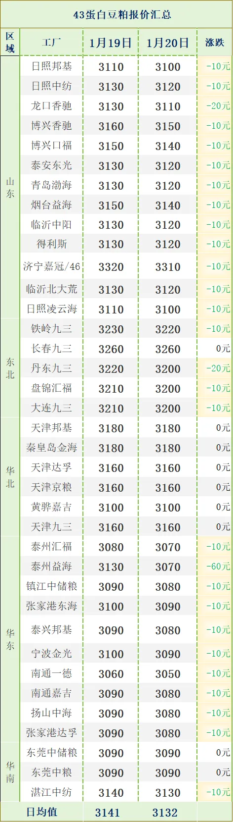>1月20日各地区豆粕价格 | 跌势又来!