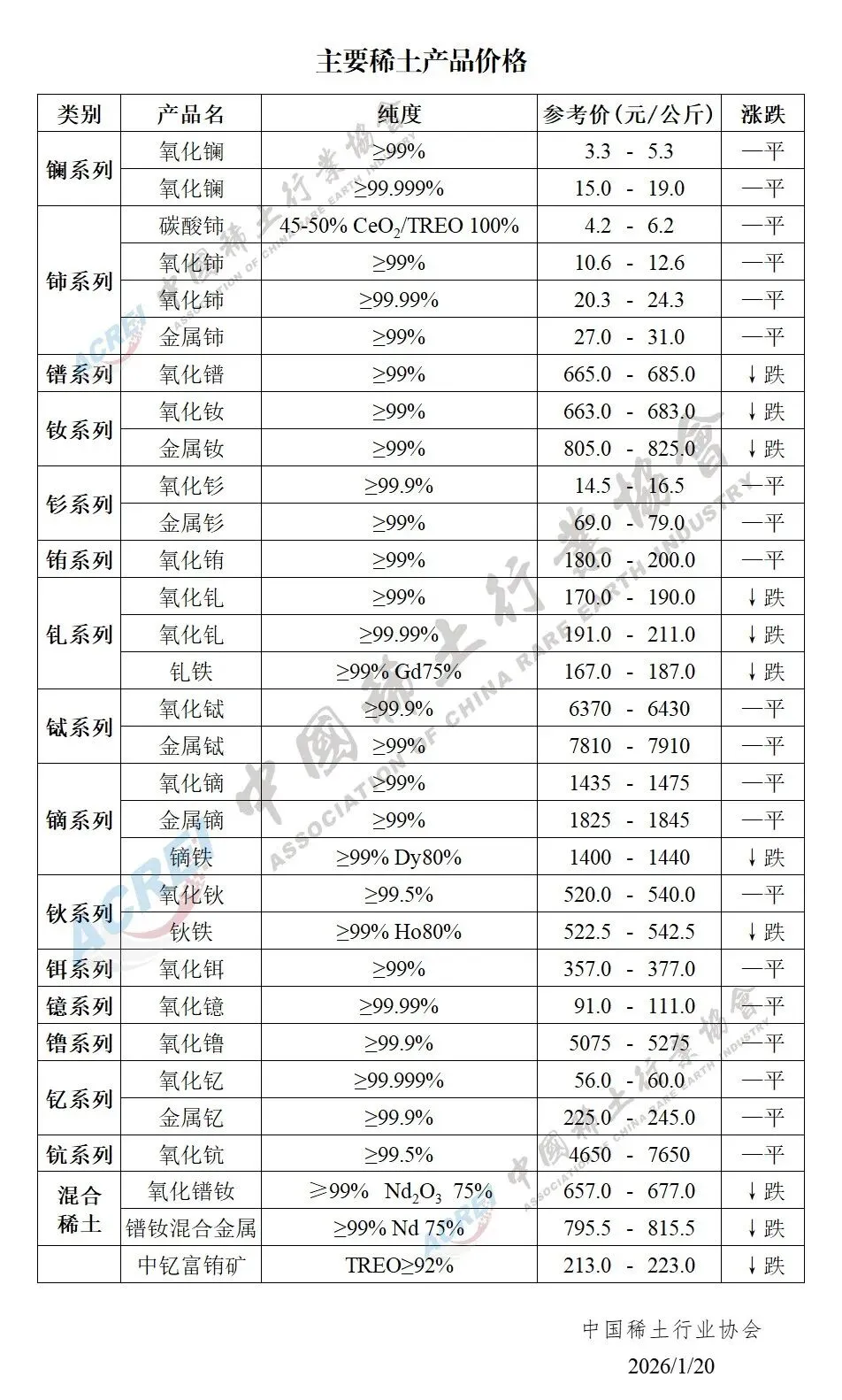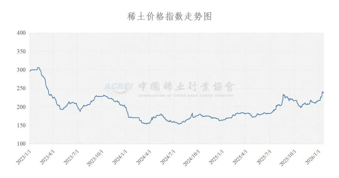 指数计算:稀土价格指数是由基期和报告期的交易数据计算组成,基期选用2010年全年的交易数据,报告期选用全国20多家稀土企业每天实时交易数据的平均值,代入稀土指数价格模型计算得出。(基期指数为100)