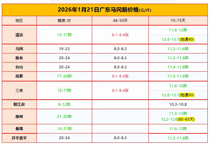 2026/1/21白羽鹅价(元/斤)仅供参考 养鹅人必备行情助手(鹅价天天报) |