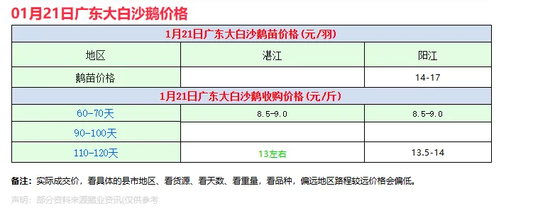 注:1.以上鹅价消息由广东广佛一线工作人员实地收集,不同地区鹅场均有一定差异,仅供参考!