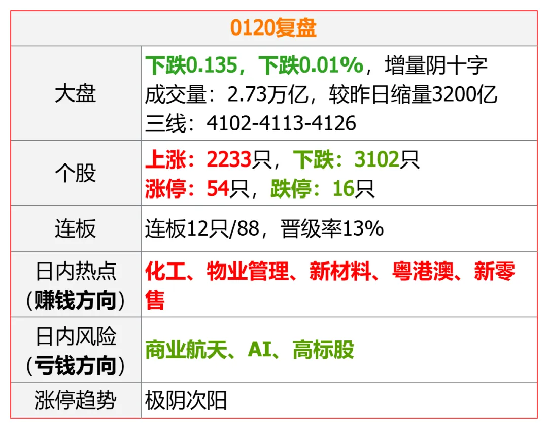 在昨日次阳平阴半的基础上,今日未能延续反弹,盘中一度跌穿黄金线,表明市场依旧较弱,若没有金融权重拉升指数,今日的指数应会跌幅较大。虽然最终指数被拉回,但题材个股却杀跌严重,以新科技、AI应用、商业航天跌幅居前。昨日强势反包的电气设备,今日也上演一日游。行情弱势,延续性差是其典型的特征。