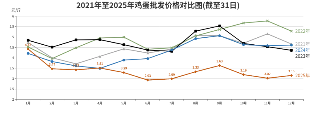 2025年鸡蛋批发、农贸、超市价格分别为每斤3.36元、4.27元、4.87元,同比分别下降21.13%、14.77%、9.81%。
