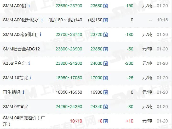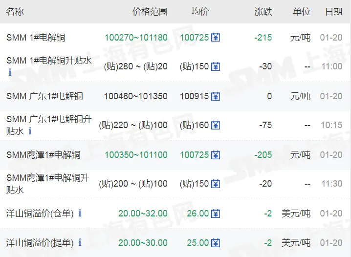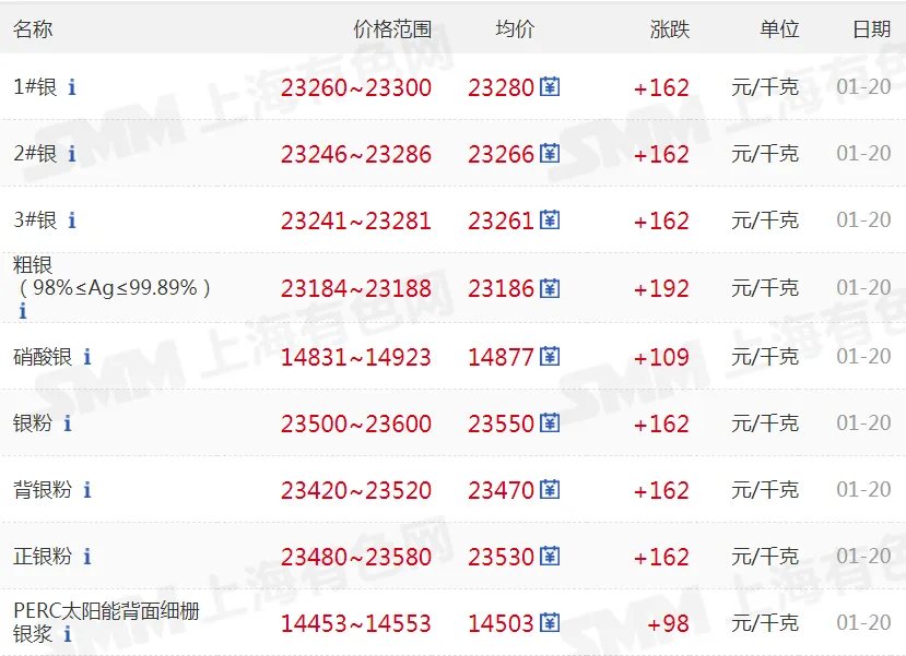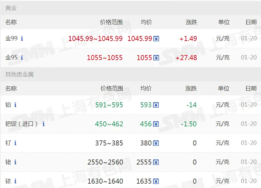 >20260120金银铜价格行情