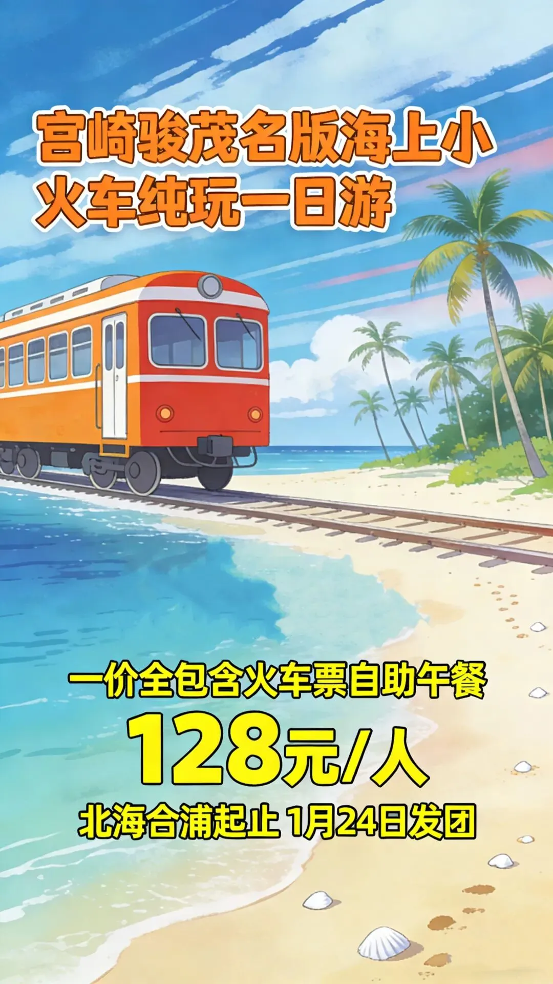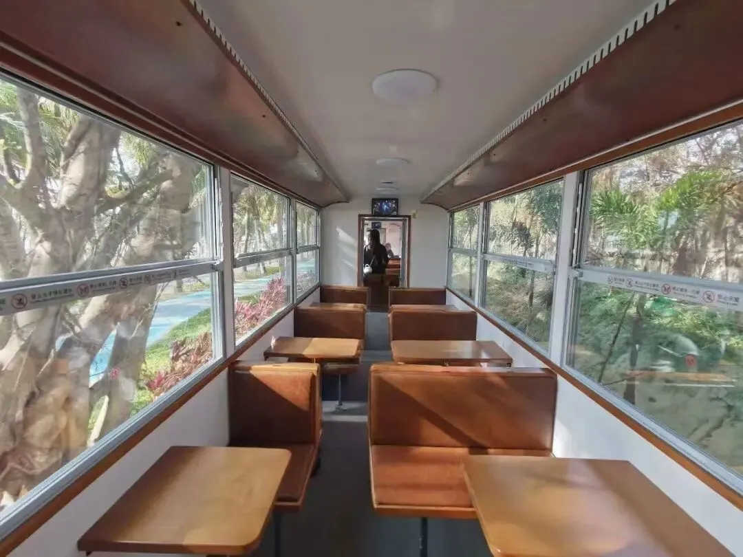 继往【茂名南海旅游岛-中国第一滩】,乘坐滨海公园观光小火车(团费包含小火车往返票),路线全程5.6公里,运行时长约57分钟,共设中国第一滩、虎头山、塘霞俚村、晏镜岭4个站点,小火车以7公里的时速平缓运行,让乘客能够从容欣赏沿途的海岸景致。从中国第一滩到晏镜岭,一路海风拂面、浪涛相伴,真正实现“车在画中行,人在景中游”的沉浸式观光体验。中途的虎头山站和俚街站,小火车会停留3分钟,乘客可以下车打卡再返回原车,也可以凭票上另外一趟车继续行程。观光小火车为单轨线路,途中设置了几个会车点,可以欣赏到两车交汇的情景。
