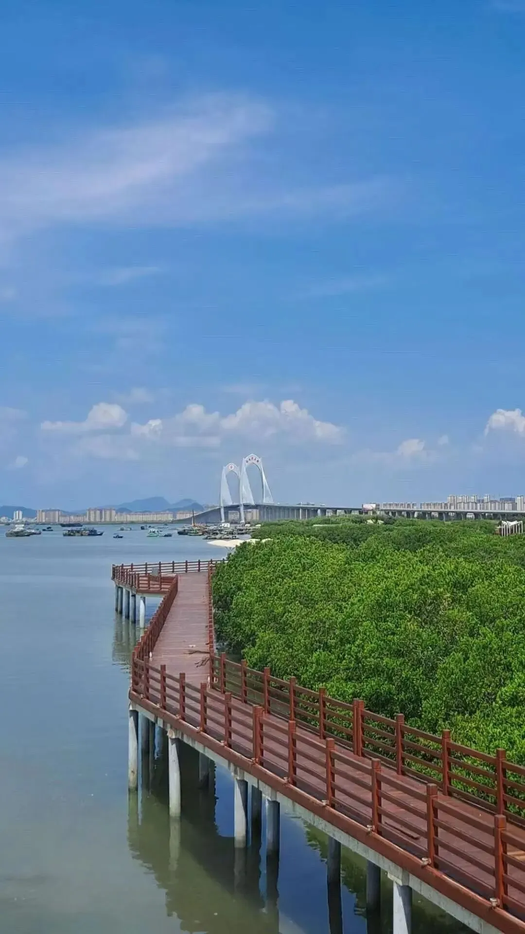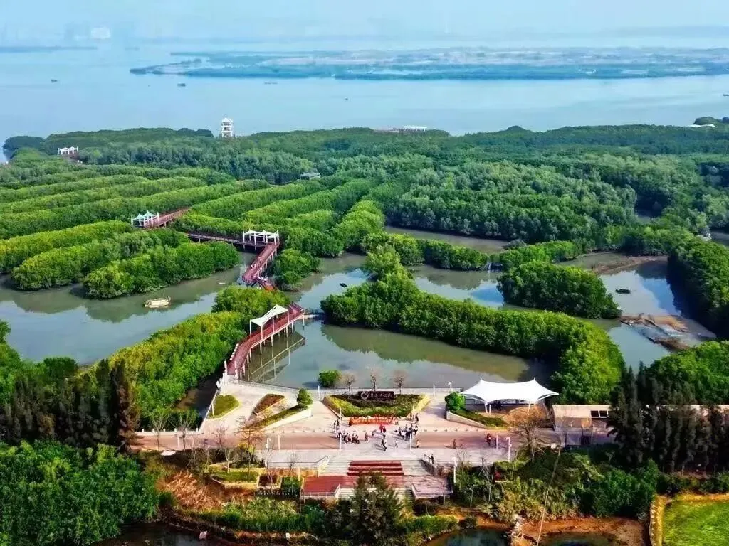 后前往游览【水东湾海洋公园】面积约45.3公顷,公园以大面积红树林为核心景观,长约1500米的海滨栈道蜿蜒穿梭于红树林与海边,沿途设置休憩节点、科普教育点、景观桥、廊架和瞭望塔等设施,游客可近距离观赏红树林生态,也可远眺海景与水东湾大桥。公园还被评为“广东省十佳观鸟胜地”,设有观鸟屋等设施,方便游客观察各类鸟类,感受人与自然和谐共生的场景。