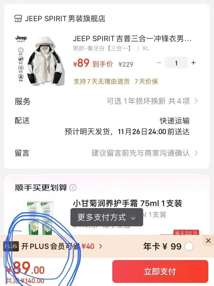 3、最后付费页面,会显示商品扣除京东隐藏优惠券后实际需要支付的价格,非常方便。