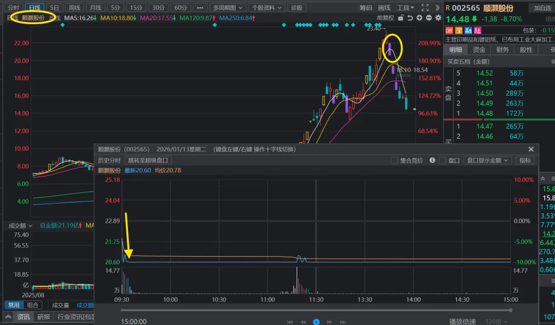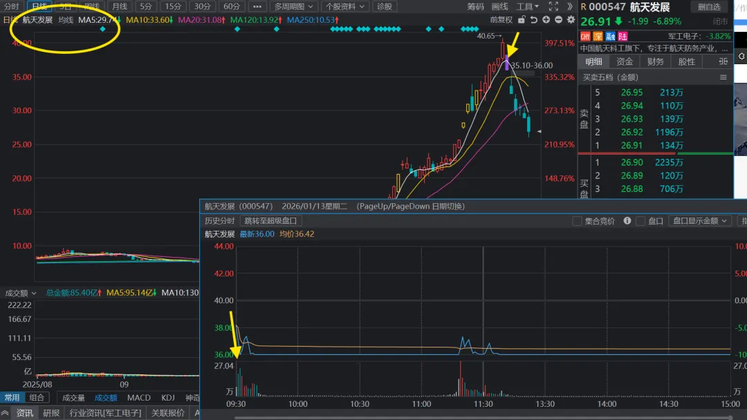 航天发展(龙头跌停了--现在看来,至少要尊重一下龙头跌停,退潮先撤出来)、顺灏股份