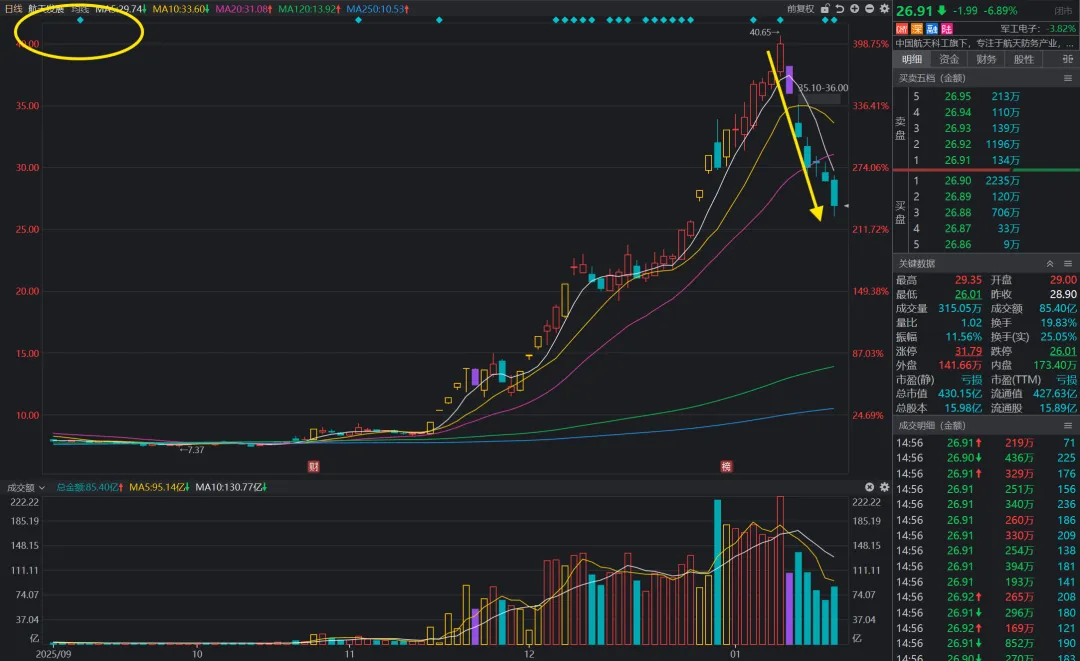 :龙头跌停。航天集体触发监管,AI应用触发监管,都是离场信号。