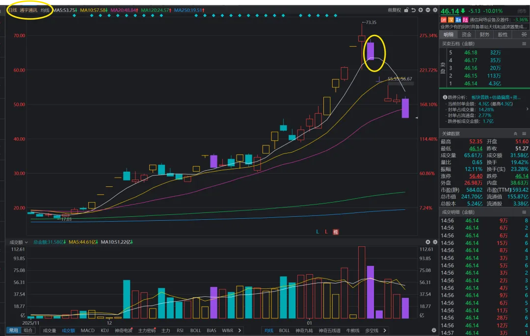 通宇通讯:后期热门股,还算温和,第一天不是一字跌停,给了逃跑的机会。
