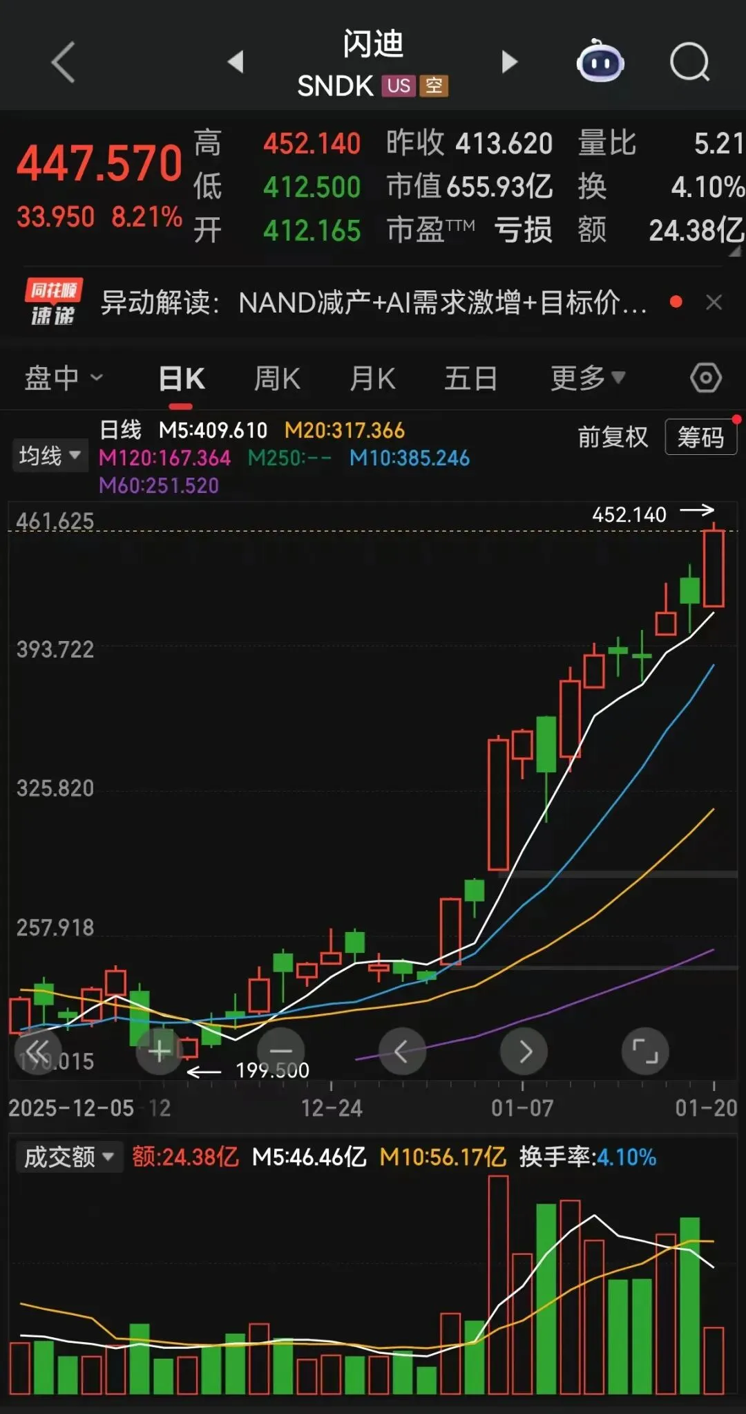 说着说着,每股闪迪和镁光等存储概念股,又新高了(