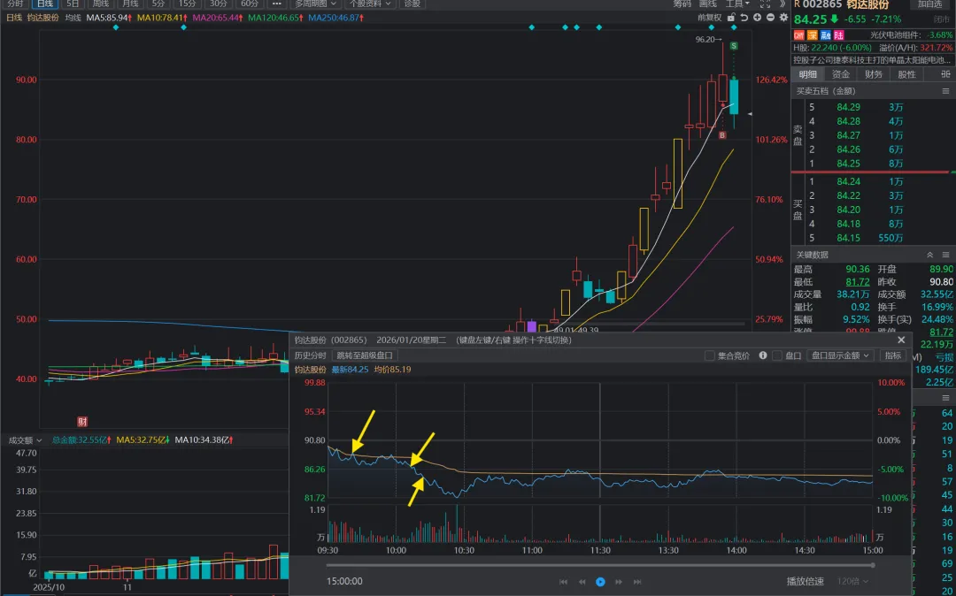 以上只是术的层面,我觉得更大的错误还是:1)钧达股份不是核心股,我是看它走势比较独立才买,