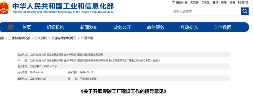 为坚持以习近平新时代中国特色社会主义思想为指导,深入贯彻习近平生态文明思想,全面贯彻党的二十大和二十届历次全会精神,落实国务院办公厅《制造业绿色低碳发展行动方案(2025—2027年)》,深挖工业和信息化领域节能降碳潜力,带动重点行业领域减碳增效和绿色低碳转型,培育发展新质生产力,工业和信息化部、国家发展改革委、生态环境部、国务院国资委、国家能源局共同研究制定了《关于开展零碳工厂建设工作的指导意见》。现印发给你们,请结合实际,认真贯彻落实。