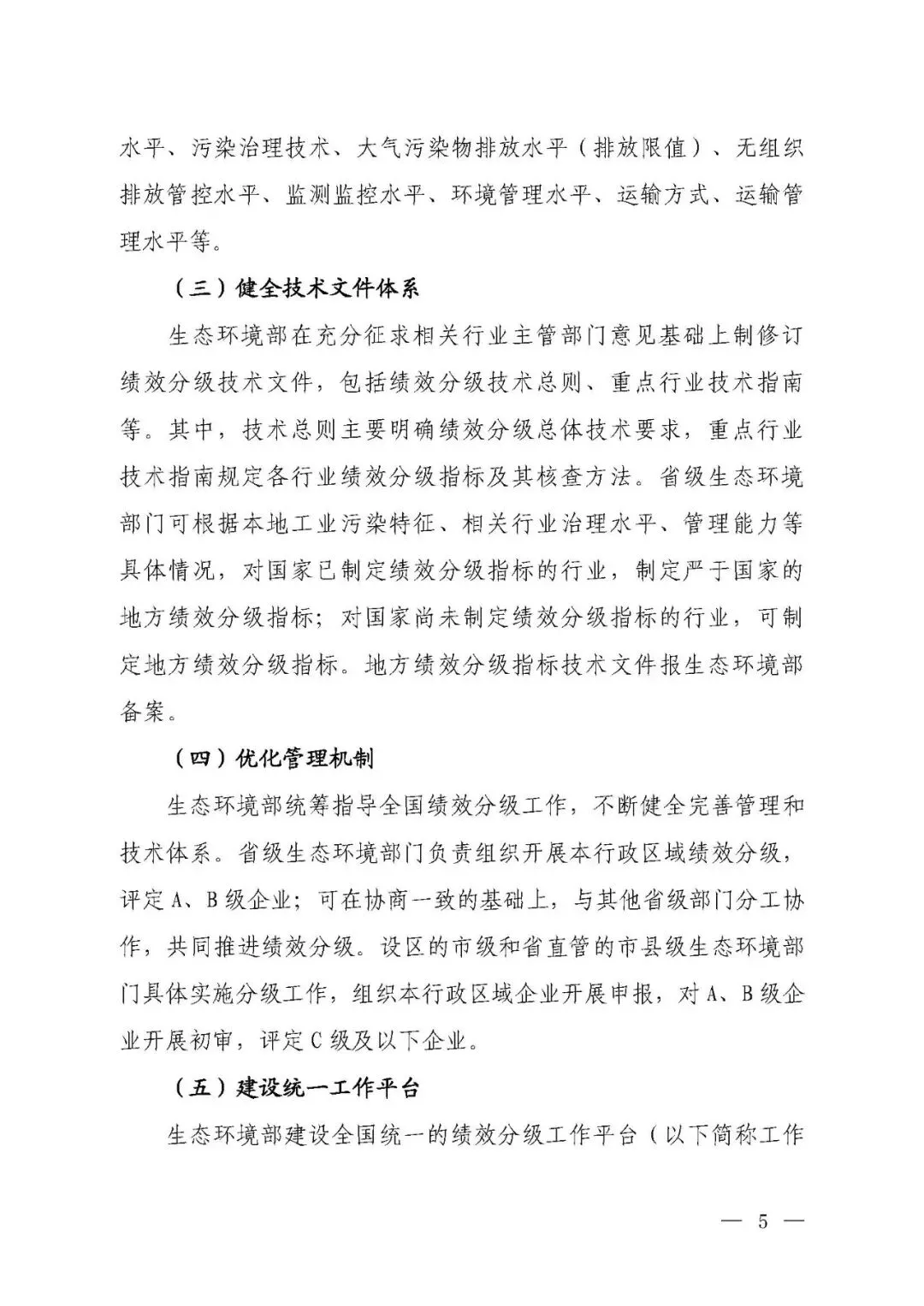 根据《意见》要求,生态环境部建设全国统一的绩效分级工作平台,从装备、工艺、能源清洁、污染治理和大气污染物排放水平等方面,对申报企业进行审核评定: