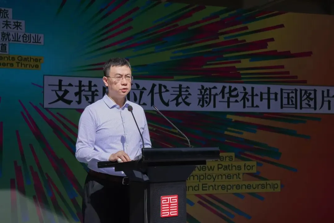新华社中国图片集团副总裁王湘宏在致辞中表示中国图片社在未来要继续做好图像采集,以影像传播搭建更多就业平台,凝聚多方力量为毕业生就业创业注入新动能。
