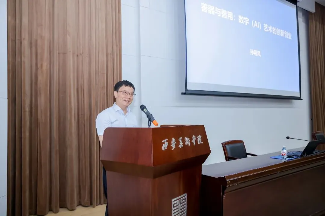 西安美术学院党委副书记李四军在讲话中以“守正创新、数智突围”为主线,从趋势变革、机遇洞察、挑战剖析、实践路径、未来展望五个维度,总结了西安美院在数字艺术浪潮中推动艺术人才就业创业的实践与思考。
