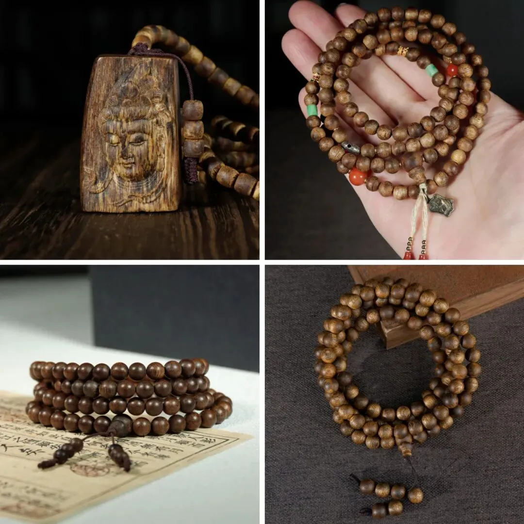 高品质沉香,每颗珠粒的纹理都会有所不同,而且沉香大多是人工制作的,这就不太可能每颗珠子大小相同。二、闻其香味