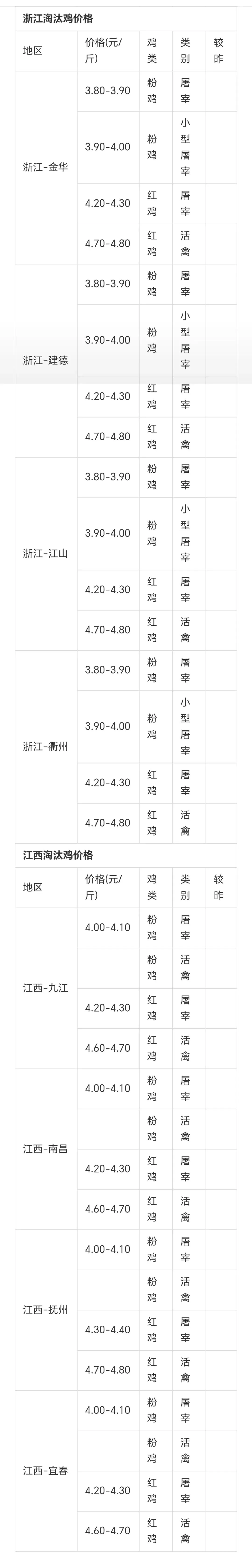 >元月21日各地淘汰鸡价格