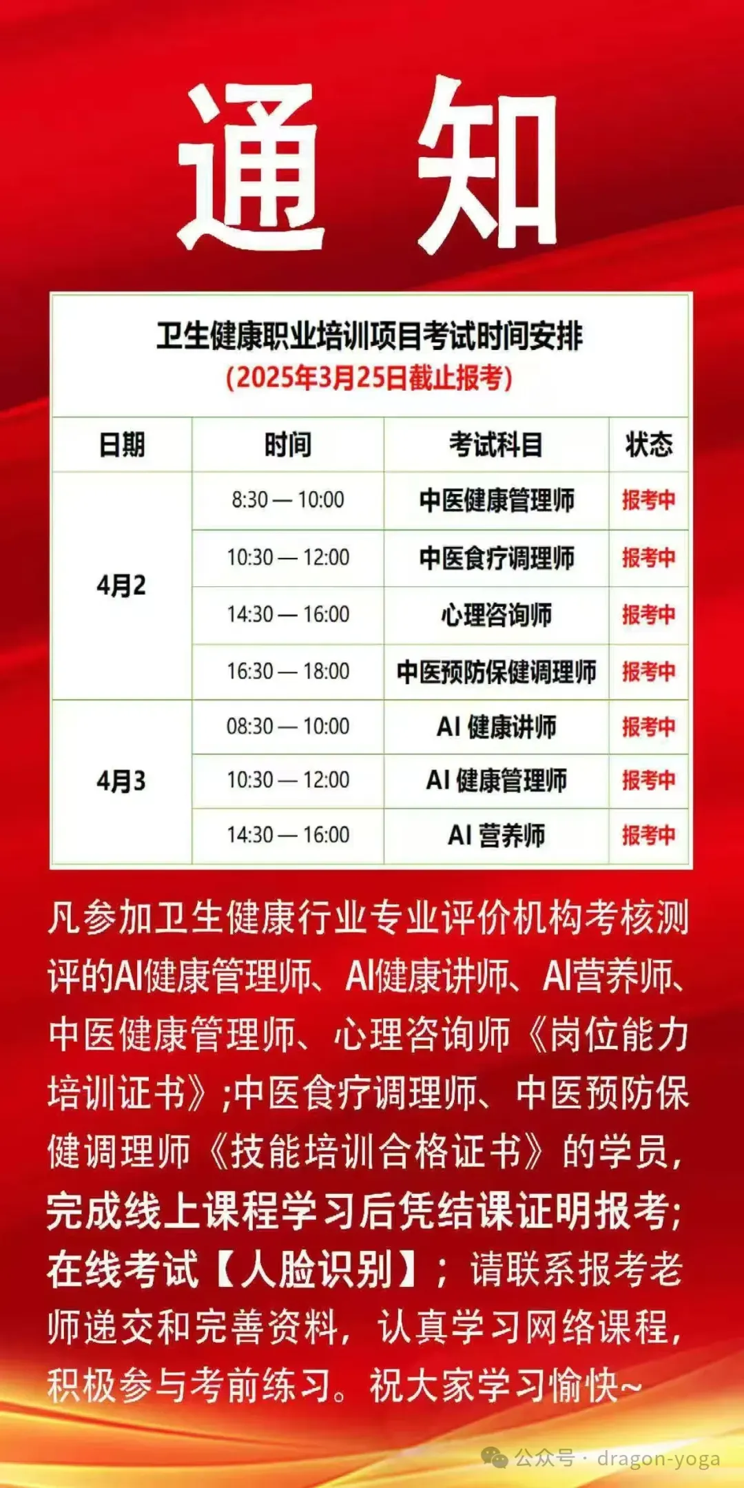 三、考培方式:线上学习和考核。健康类、心理卫生建设、医疗陪诊顾问、中医艾灸疗法考试时间为每月底最后一周的周六或者周日。