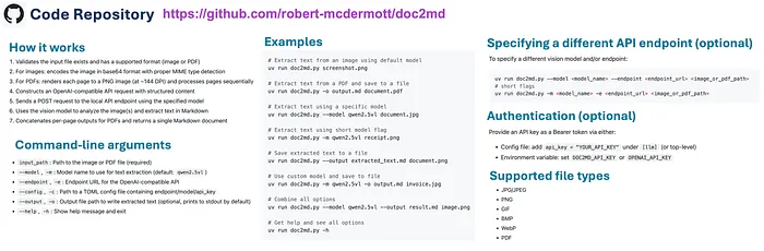 Doc2MD 是一个独立的实用程序,以下是它作为视觉大语言模型驱动的文档到 Markdown 方法的公共示例: