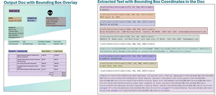 - • 原始文档的图像,在每个检测/提取的文本块上覆盖彩色编码的边界框
