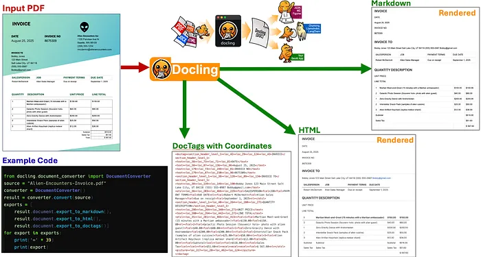 带有代码及其输出的 Docling 示例(点击图像放大)